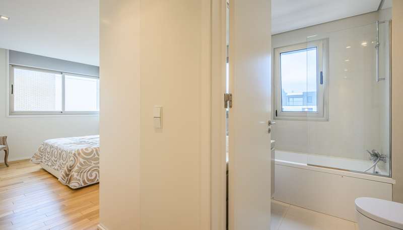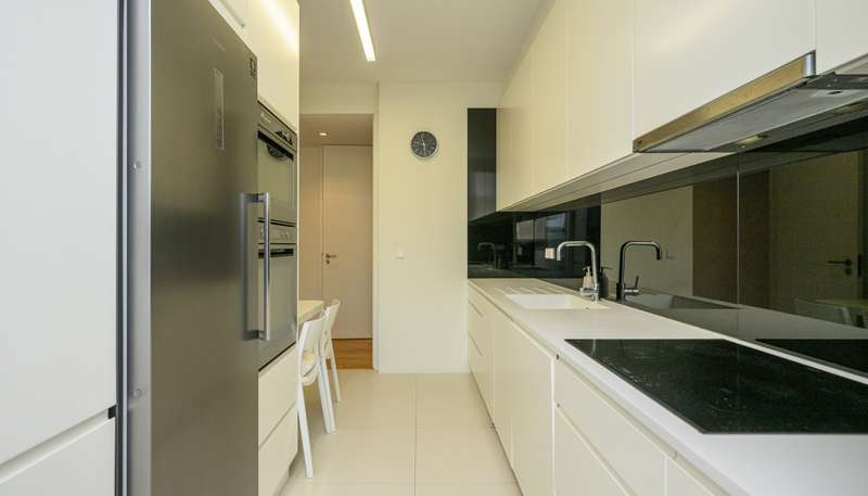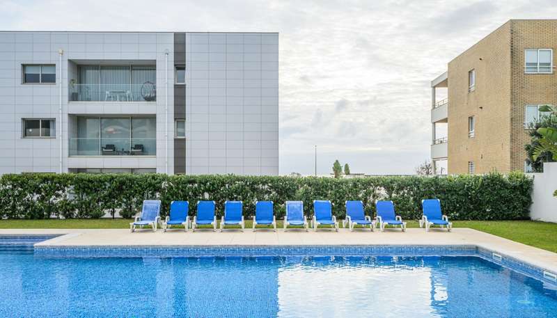 Fantastic two-bedroom apartment on the seafront, next to Madalena beach. Set in a gated community with a swimming pool, tennis court and gardens, the apartment includes a living room with a balcony, a guest toilet and an equipped kitchen with a laundry room. In the intimate area of the house, there are two suites with built-in closets. It also has a garage for 2 cars. Close to shops, services and excellent road access. CHARACTERISTICS:Area: 109 m2 | 1 172 sq ft Bedrooms: 2 Bathrooms: 3 Garage: 2 Energy efficiency: A