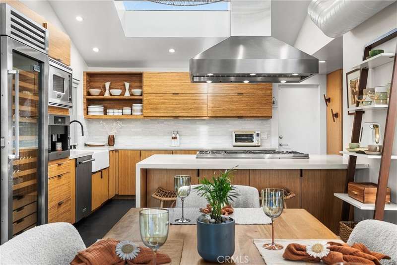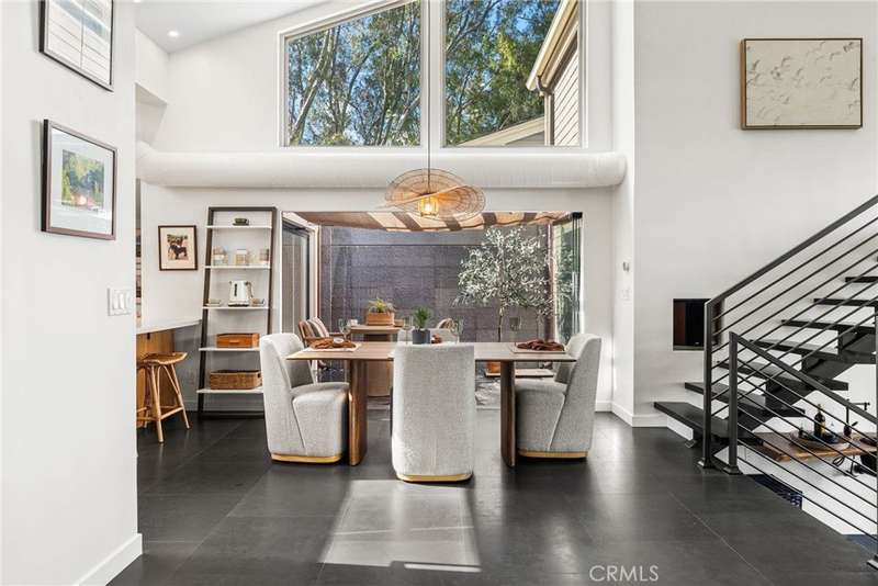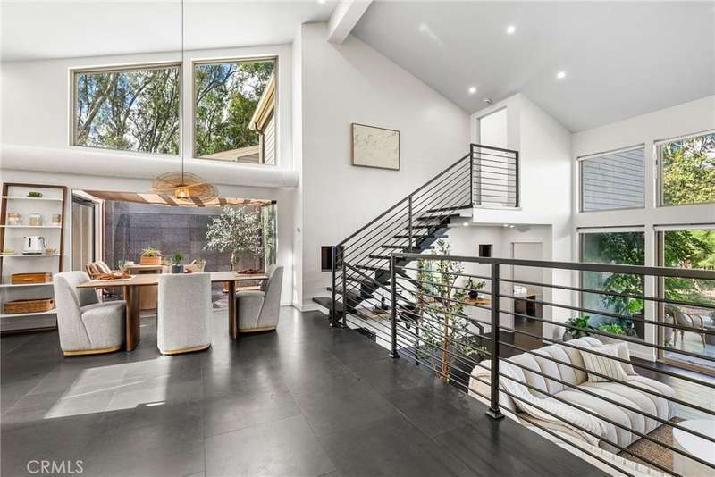 Perched in the exclusive Ridgeview enclave of Turtle Rock, this move-in-ready architectural stunner embodies the pinnacle of modern Irvine living. Spanning 2,173 square feet, the home showcases four bedrooms, three designer baths, and an effortless fusion of elegance and comfort. Walls of glass invite breathtaking canyon vistas, while its premier location near Sand Canyon Reservoir and Strawberry Farms Golf Club places nature, recreation, and sophistication at your doorstep—all within reach of Irvine’s award-winning schools. Few homes capture beauty, serenity, and style quite like this one. Completely reimagined with high-end materials and sleek modern design, this residence blends comfort, style, and craftsmanship at every turn. The chef’s kitchen is a showpiece, featuring a full suite of Viking appliances—including a built-in refrigerator, 60-inch professional range, microwave, dishwasher, and 250-bottle wine refrigerator—along with a built-in Miele espresso machine for the perfect morning indulgence. Quartz countertops, a glass backsplash, and custom lift-up cabinetry create a refined aesthetic, while basalt and custom wood flooring flow seamlessly throughout. The kitchen opens to both informal and formal dining spaces that flank a dramatic atrium water feature, where water cascades gracefully down a nine-by-ten-foot wall; glass walls surrounding these dining areas flood the space with natural light and provide effortless indoor-outdoor access. The living room’s basalt-clad fireplace serves as a striking focal point, and three sets of disappearing glass doors open to expansive canyon views and a beautifully designed backyard retreat featuring multiple seating areas, lush low-maintenance landscaping, and a spacious patio that extends the home’s contemporary aesthetic outdoors. The home offers dual primary suites—one on each level—for flexibility and privacy, with the upper suite showcasing a newly remodeled spa-inspired bath complete with a central rain shower beneath an operable skylight, a sleek quartz-topped dual vanity, and a private balcony overlooking the serene backyard and canyon. The fourth bedroom, currently used as a den, A state-of-the-art security system ensures peace of mind, and residents enjoy access to Ridgeview’s community pool and sports courts. With its refined finishes, modern flow, and seamless indoor-outdoor living, 7 Morning Sun is a move-in ready home designed for those who value luxury, innovation, and exceptional design.