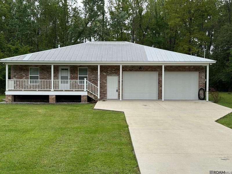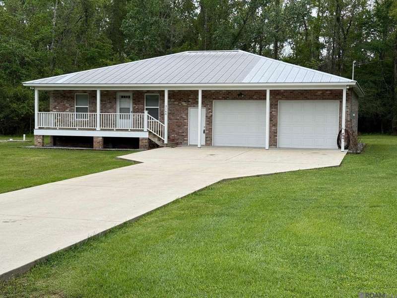 Country Charm! Brand new appearance! Clean as a whistle! Looks brand new! Cute two bedroom house with a large double attached garage on beautiful wooded lot! House has no kitchen appliances other than the hood vent. Property is total electric. House is built above the flood plan, but garage is not House and garage have a standing seam metal roof. There's crawl space vent for sump pump under the house. Also available: One acre lot to left facing this property, under separate listing.