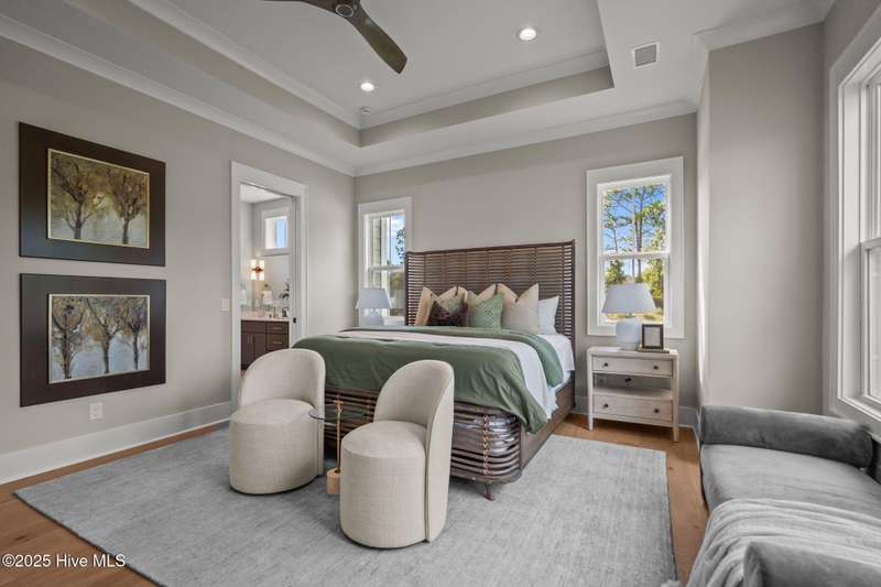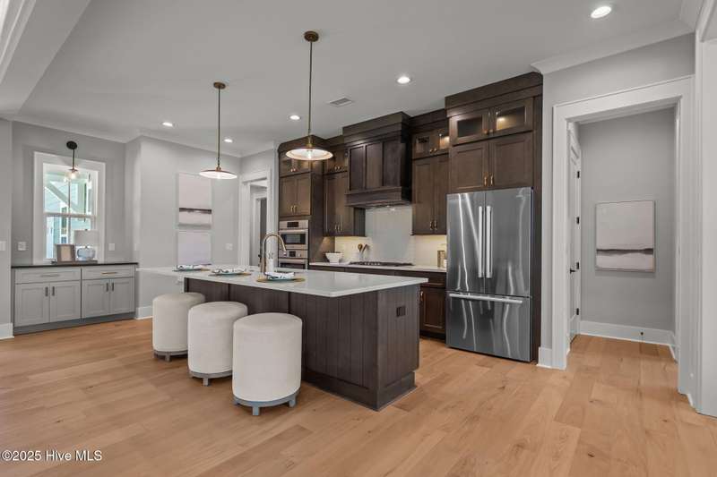 RiverBrook's Cypress plan offers an open and thoughtful design, blending everyday functionality with elevated style. This spacious floor plan offers an open-concept layout with 4 bedrooms, 4.5 bathrooms, an office, and a large upstairs multi-purpose room. At the heart of the home, you're welcomed by richly stained kitchen cabinetry with a walk-in pantry and oversized island that flows seamlessly into the dining area and great room, making it the perfect space for entertaining. Built-in features like the coffee bar, and dry bar add charm and convenience at every turn. The owner's suite is a private retreat featuring a spacious bedroom, luxurious bath, and generous walk-in closet. Two additional bedrooms, each with walk-in closets, provide comfort for family or guests, while a dedicated home office offers quiet space for work or study. Upstairs, a large multi-purpose room and full bath create endless possibilities for a game room, lounge, or media space. Designed for both indoor and outdoor living, the Cypress includes a covered front porch and an expansive outdoor lounge with pond views, extending your living space into the fresh air. Additional floor plan highlights include a convenient drop zone, laundry room, ample storage, and a 2-car garage with extra depth for larger vehicles or hobby space. With its thoughtful layout, elegant details, and versatile spaces, the Cypress is more than a floor plan, it's the perfect place to call home.