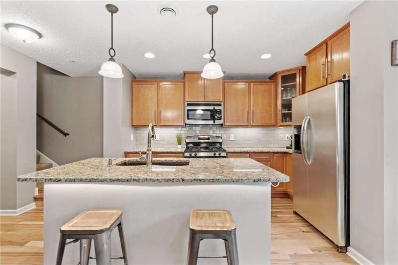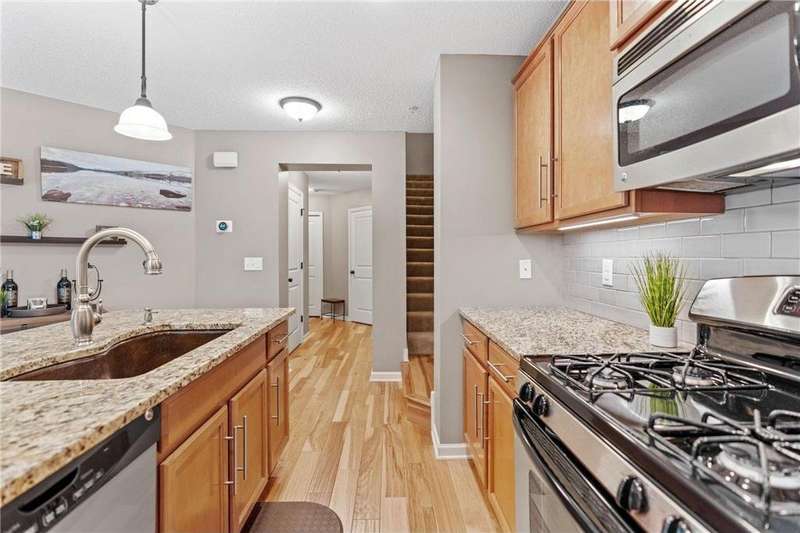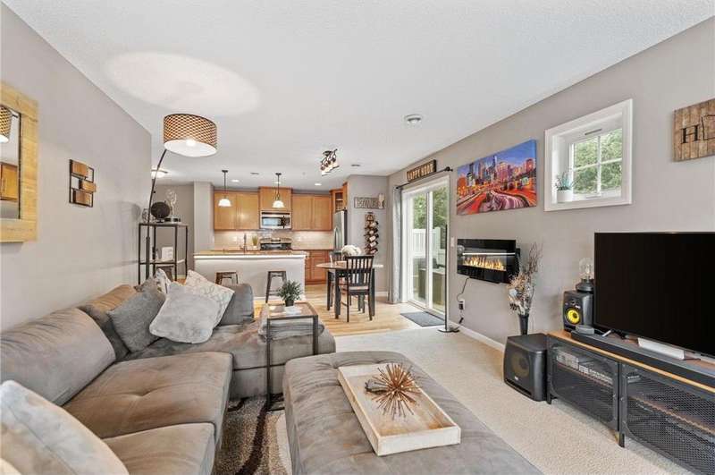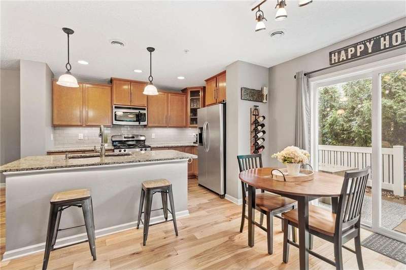 Welcome to this well-maintained end-unit townhome in conveniently located Eagan. The kitchen boasts a spacious island, granite countertops, stainless steel appliances, and hardwood flooring. The open-concept main level is bathed in natural light, offering ample storage and convenience. On the upper level, you will find three generously sized bedrooms and two bathrooms, complemented by a conveniently located laundry area, all featuring a mix of carpet and tile flooring. The impressive owner’s suite includes a spacious sitting or office area, a walk-in closet, and a private bath. Additionally, the upper level features a versatile loft, perfect for a family room or home office. Step outside to your spacious patio nestled among mature trees, providing a serene setting ideal for relaxation or entertaining. This prime location is conveniently situated near the Twin Cities Premium Outlets and Lebanon Hills Park, and is just 15 minutes from downtown Minneapolis and St. Paul. Don’t miss the opportunity to make this exceptional home your own.