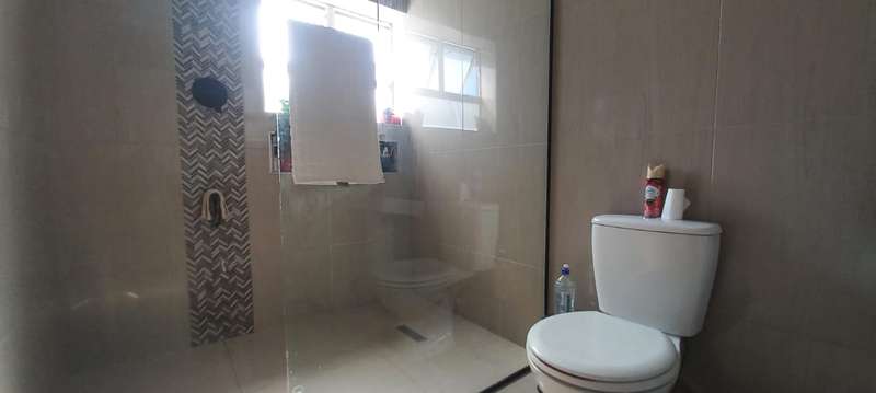 Tastefully finished three bedroomed home situated in a quiet cul de sac. The home consists of three bedrooms, no built in cupboards. A large family bathroom, with toilet, basin and shower. Modern open plan kitchen and lounge leading to dining area. Parking for at least three cars behind secured gates. An incomplete separate entrance consisting of one bedroom, Kitchen and bathroom. Cosy backyard. For more information , please do not hesitate to contact me.