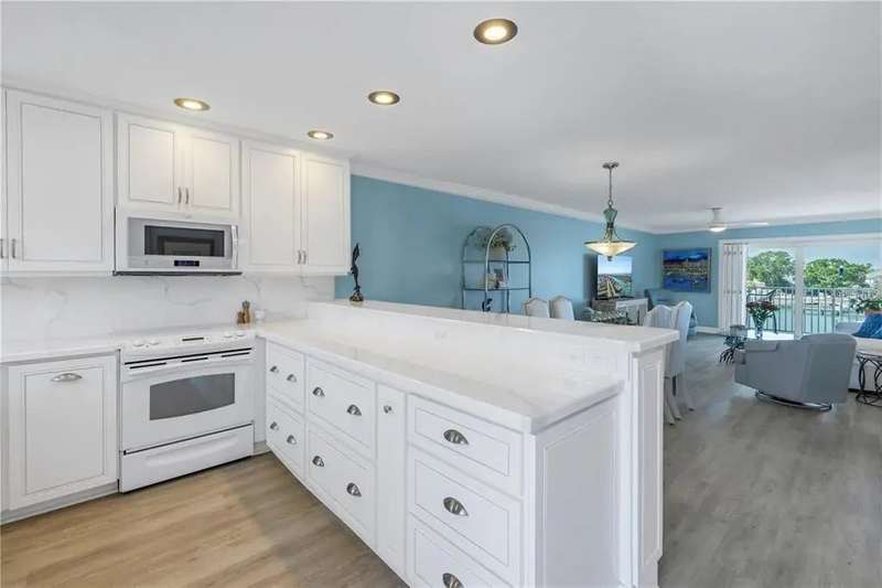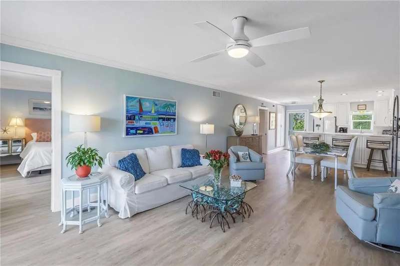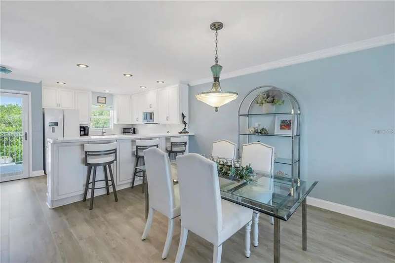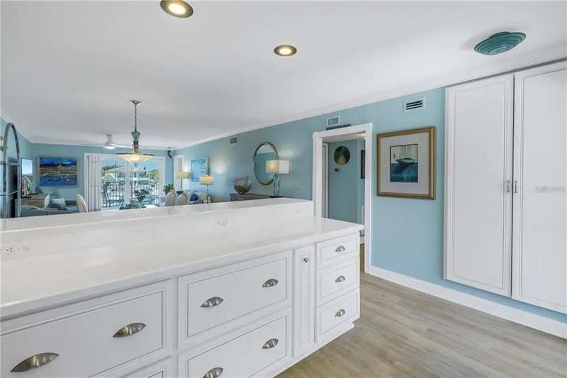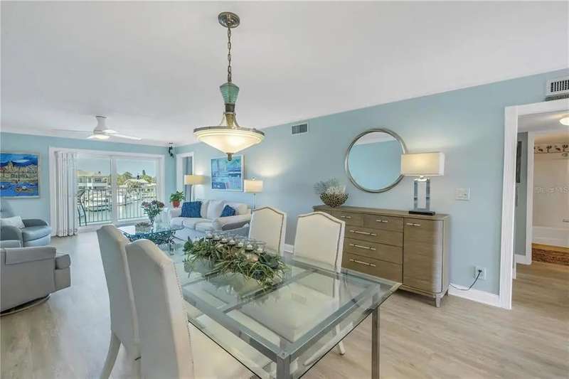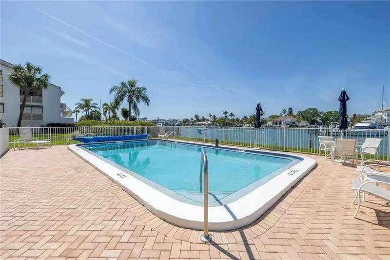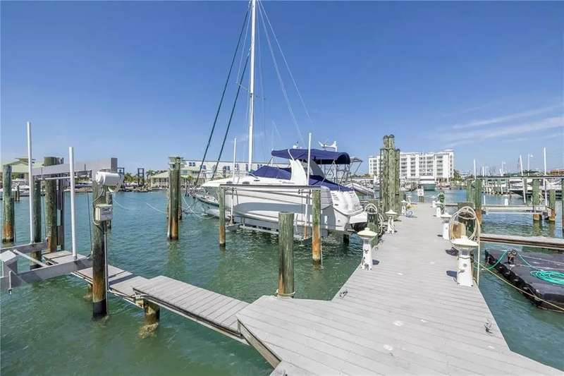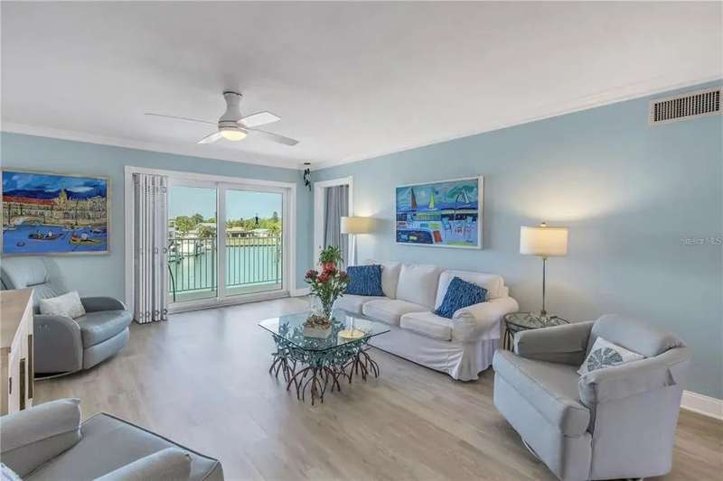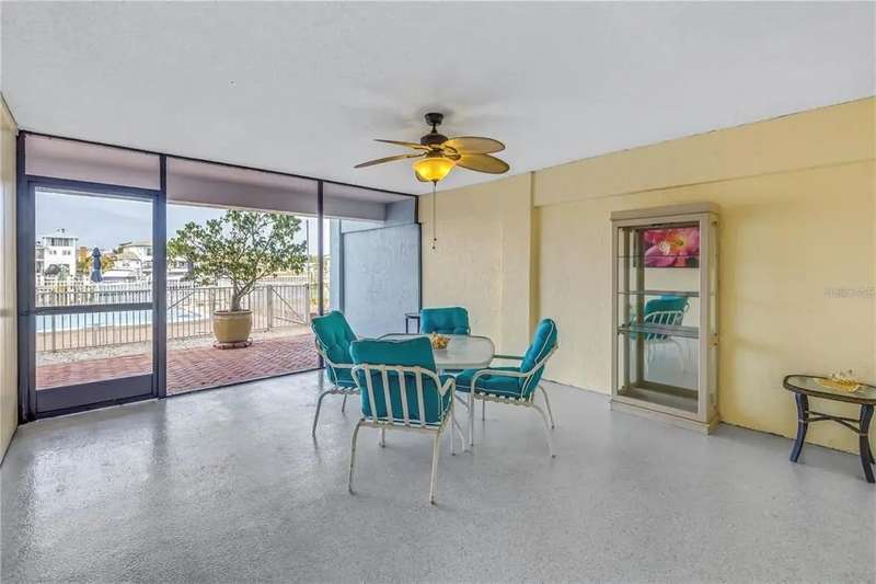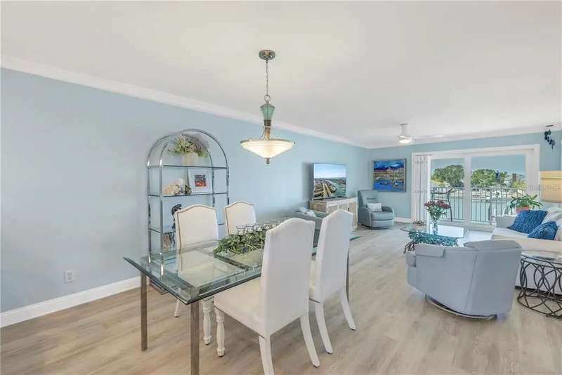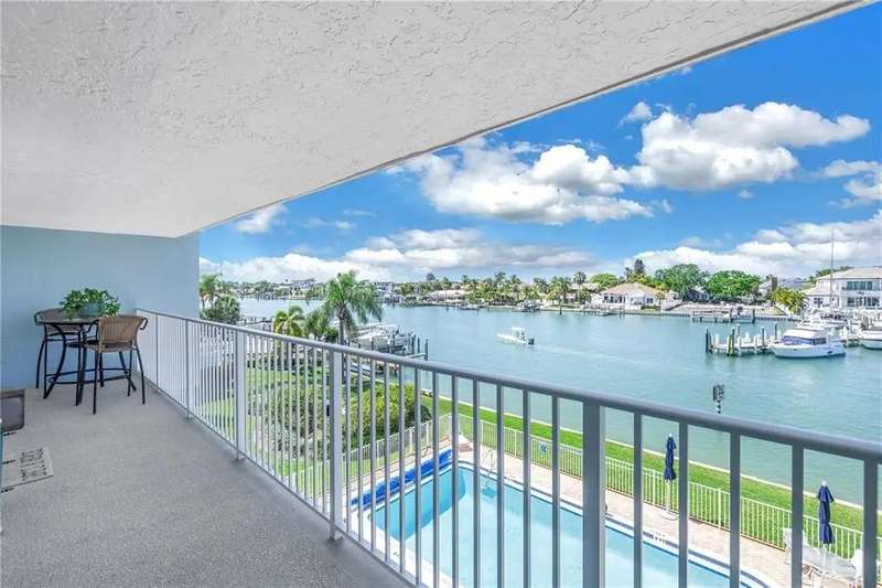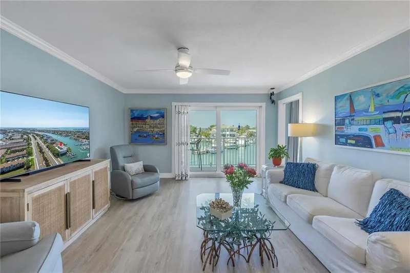 Waterfront condo with a boat slip on the Grand Canal in Tierra Verde! Discover the allure of Gulf Coast living with this beautifully updated top-floor condo. With tasteful upgrades throughout, this residence strikes the perfect balance of style and functionality. A welcoming retreat for those seeking the best of Florida’s waterfront lifestyle. Step inside to a thoughtfully remodeled kitchen that seamlessly flows into the open dining and living areas, creating a warm, connected space ideal for everyday living or entertaining. Crown molding, wide baseboards, and detailed door casings in the living room showcase the craftsmanship and care found throughout the unit. The guest bedroom and bath, along with a discreetly tucked-away laundry room, provide comfort and privacy for guests. A thoughtfully placed pocket door allows you to create a private guest suite when desired. The primary suite located just off the living room features balcony access, a beautifully renovated en-suite bath, and a custom walk-in closet. Impact sliding doors lead to a full-length balcony overlooking the peaceful Tierra Verde Grand Canal. The perfect place to relax and soak in the view. One of this property's most sought after features is the approximately 45-foot boat slip directly across from the fueling stations at Port 32 Marina offering quick, direct access to the Gulf. A true boater’s dream! Additional perks include a large bonus cabana/flex space on the ground level, perfect for storage or waterside entertaining. The open-air deck and screened cabana are perfectly situated in front of the heated pool. Ideally located just minutes from Fort De Soto Park and the award-winning sands of St. Pete Beach, this condo offers refined coastal living with everyday convenience.