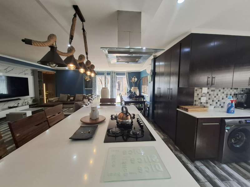 STUNNING GERDVIEW HOME - A MUST SEE !!! Lovely property to be found in a quiet street in Gerdview. Beautifully refurbished this spacious home offers many lovely modern features. Ideal for family looking for a home where they can spend many hours just relaxing, enjoying and entertaining in the privacy of their own space. WHAT THIS HOME HAS TO OFFER: Very spacious open plan lounge, dining area and kitchen. Designer kitchen with loads of wood cabinetry, quartz countertops, and mosaic splashbacks. Kitchen is fitted with a gas & electric stove. A great feature of this kitchen is the large island which is ideal for family gatherings. 3 Spacious Bedrooms with built in cupboards. Main bathroom is not complete however has been fully fitted and plumbed ?Çö just waiting for final personal touches like the shower glass, basin, and toilet. Guest bathroom spacious and includes toilet basin and shower. Modern tiling, fittings and lighting. Outdoor entertainment area is situated in a private area at the back of the property and offers a Jacuzzi spa overlooking a sparkling pool. Included is a large size entertainment area with a built-in braai, fully equipped bar, bar stools, and a very handy guest toilet. For the handyman there is also a huge storage room, ideal for storing tools etc. Domestic quarters available. Separate outside room that can be effortlessly transformed into a flatlet, work from home space, studio. Ideal for generating extra income. ADDITIONAL FEATURES: 3 x Air conditioners Designer TV unit with custom lighting Home is secured by high walling, wall spikes, burglar bars and gates. To view this stunning property contact us today.