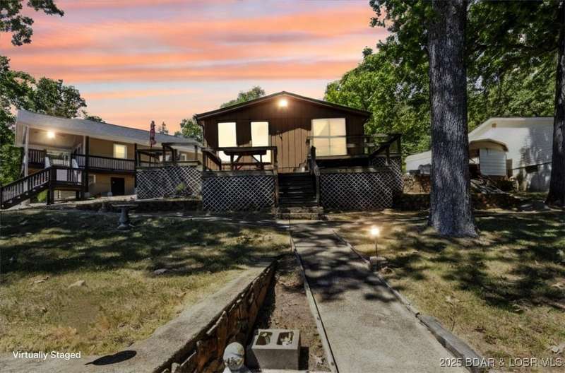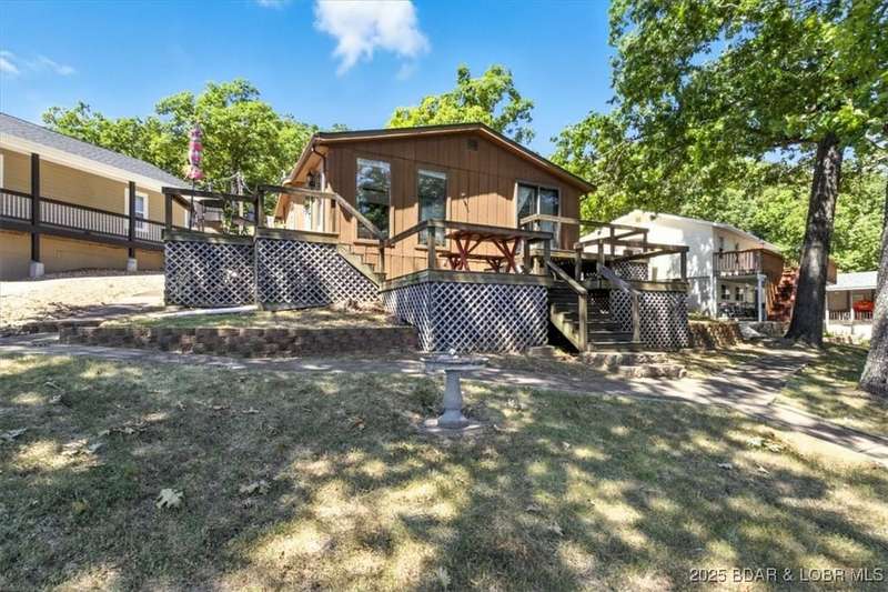 Affordable opportunity at the 38 MM in the same cove as Bear Bottoms!!! This charming ranch lake home sits on a gentle lot with a fantastic view, plenty of deck and complete with a martini deck for relaxing or entertaining lakeside. Located in a no-wake cove, its the perfect setting for fishing, swimming, and quiet lake enjoyment without harsh waves. The home has been well maintained over the years and is selling furnished (personal belongings will be moved mid Sept). So pack your bags and enjoy the lake! New roof in 2024 and high speed fiber optic internet is available for excellent streaming and allows for remote working as well. Additional popular on the water restaurants are near and its just a few minutes drive to grocery stores, etc. Enjoy use of the community boat ramp, just one house over, and community pool! With tons of potential, it can serve as an income-producing nightly rental, a fun flip project, or a cozy getaway. Whether youre looking to invest or enjoy lake life yourself, this property offers the rare combination of location, outdoor living, and affordabilityall in one package!