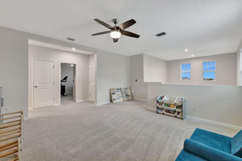 Lowest price per square footage home in the Emery II. This beautifully constructed CBS home boasts 4 spacious bedrooms and 2.5 bathrooms. This home features an open and airy floor plan, perfect for entertaining with internet included. The first-floor primary suite offers a peaceful retreat with dual walk-in closets and a luxurious en-suite bathroom, complete with a separate shower, and soaking tub. Upstairs, a large, expansive loft provides endless possibilities--perfect for a media room, or play area. The chef-inspired kitchen is a standout, featuring stainless steel appliances, a gas range, large quartz island, and a water filtration system with reverse osmosis. Enjoy the added convenience of a 2-car garage, impact storm protection and solid CBS construction on BOTH levels.
