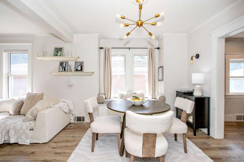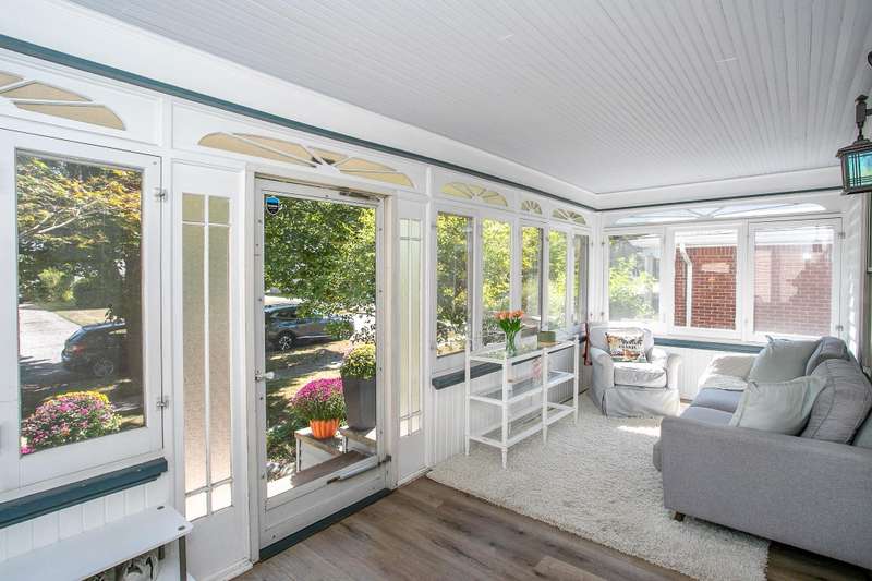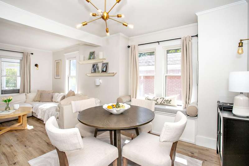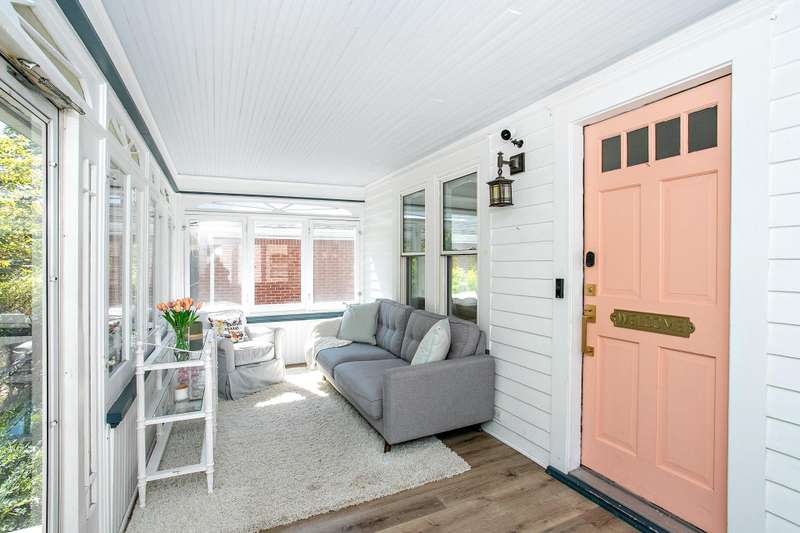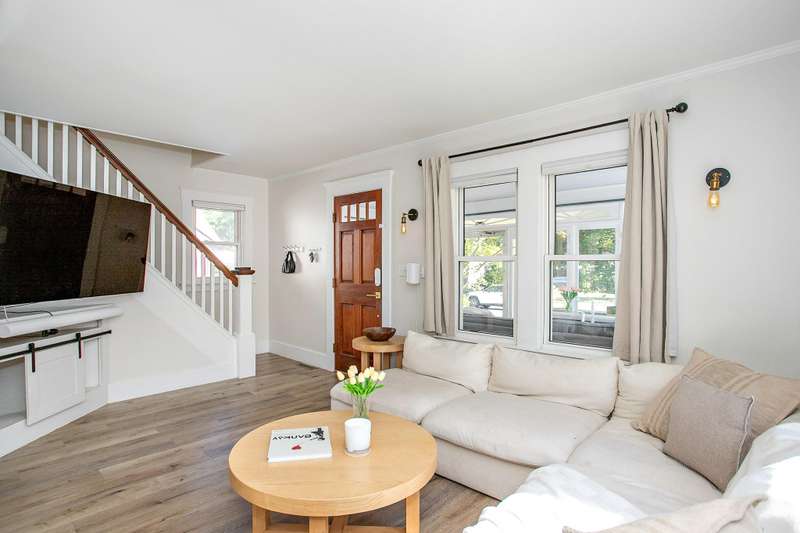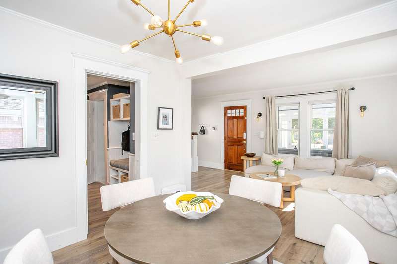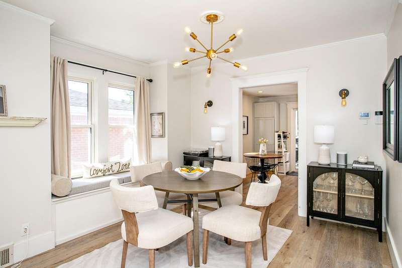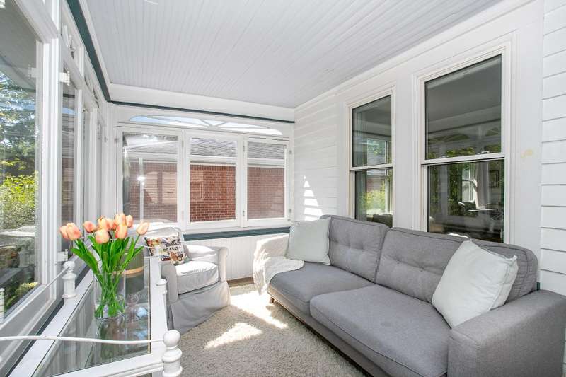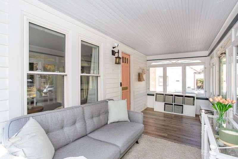 Every room is spacious and light-filled in this fantastic 1920's Craftsman with 3 bedrooms, 2 full and 1 half baths, a huge remodeled kitchen, and a partially finished basement—all in a fabulous location! The spacious and inviting enclosed porch is such a great space to relax and entertain and leads you in to the large light filled living room with wood floors and a quintessential set of Craftsman windows that open up the entire living room. The sunny dining room also has large windows, and an inviting built-in window seat with storage. The huge eat-in, center island kitchen addition has grey shaker cabinetry, lots of granite countertop space, stainless appliances. a large pantry cupboard, and a moveable center island. Sliding doors bring in the outdoors where you can walk right out to the enchanting back yard oasis with a pergola covered stamped concrete patio and brick fireplace, and a beautiful water feature--great for relaxing and entertaining. The cozy main floor office is multi-purpose with built-ins and lockers, and a recently installed powder room, all conveniently located off of the side door and driveway. The charming staircase leads you upstairs to 3 bedrooms and 2 full baths, including a remodeled hall bath and a lovely primary suite with en-suite bathroom and a walk-in closet. The basement is partially finished and provides an additional living space for working, playing or workout, and a spacious laundry room with new washer & dryer, and room for storage. The lovely yard has a 1.5 car garage complete with a port for an EV charger. The great location on this fabulous, move-in ready charmer puts you close to downtown and the elementary school. This one is a winner!