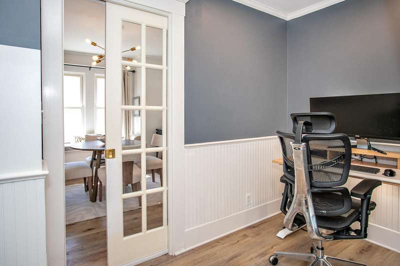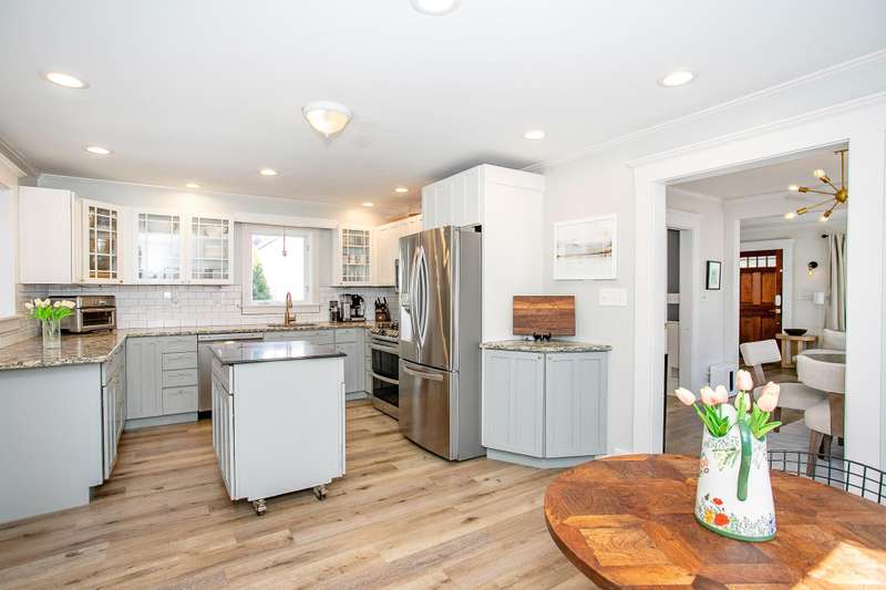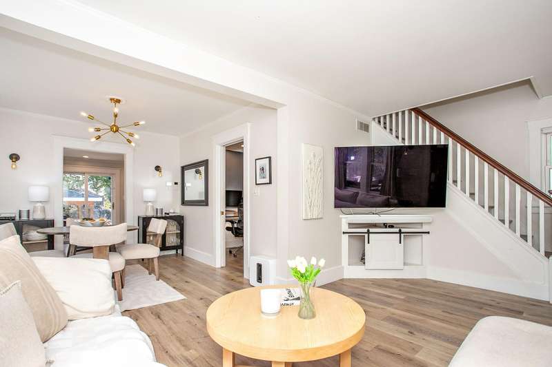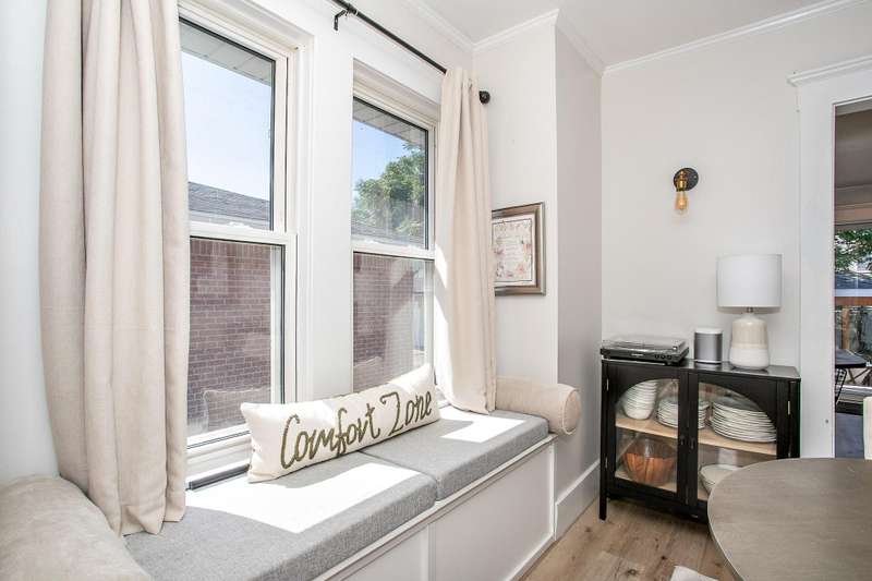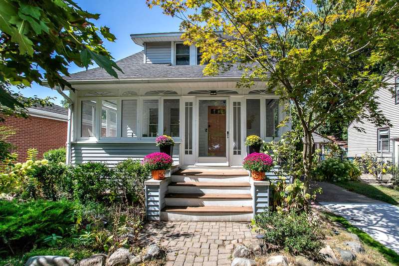 ** MULTIPLE OFFERS , PLEASE HAVE OFFERS IN BY SUNDAY, SEPTEMBER 28TH AT 8PM. **Every room is spacious and light-filled in this fantastic 1920's Craftsman with 3 bedrooms, 2 full and 1 half baths, a huge remodeled kitchen, and a partially finished basement—all in a fabulous location! The spacious and inviting enclosed porch is such a great space to relax and entertain and leads you in to the large light filled living room with wood floors and a quintessential set of Craftsman windows that open up the entire living room. The sunny dining room also has large windows, and an inviting built-in window seat with storage. The huge eat-in, center island kitchen addition has grey shaker cabinetry, lots of granite countertop space, stainless appliances. a large pantry cupboard, and a moveable center island. Sliding doors bring in the outdoors where you can walk right out to the enchanting back yard oasis with a pergola covered stamped concrete patio and brick fireplace, and a beautiful water feature--great for relaxing and entertaining. The cozy main floor office is multi-purpose with built-ins and lockers, and a recently installed powder room, all conveniently located off of the side door and driveway. The charming staircase leads you upstairs to 3 bedrooms and 2 full baths, including a remodeled hall bath and a lovely primary suite with en-suite bathroom and a walk-in closet. The basement is partially finished and provides an additional living space for working, playing or workout, and a spacious laundry room with new washer & dryer, and room for storage. The lovely yard has a 1.5 car garage complete with a port for an EV charger. The great location on this fabulous, move-in ready charmer puts you close to downtown and the elementary school. This one is a winner!