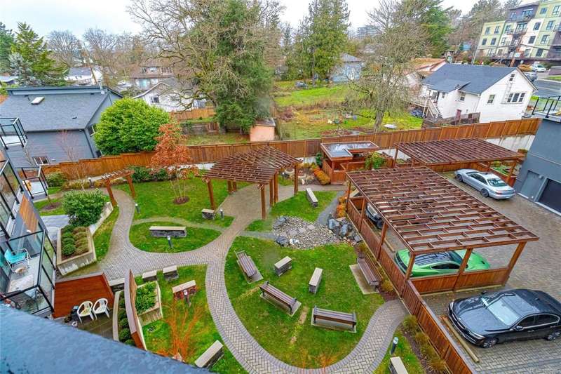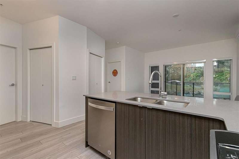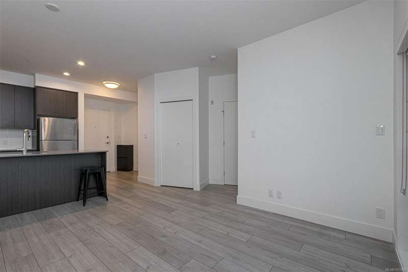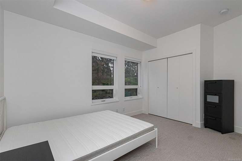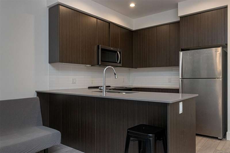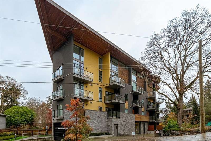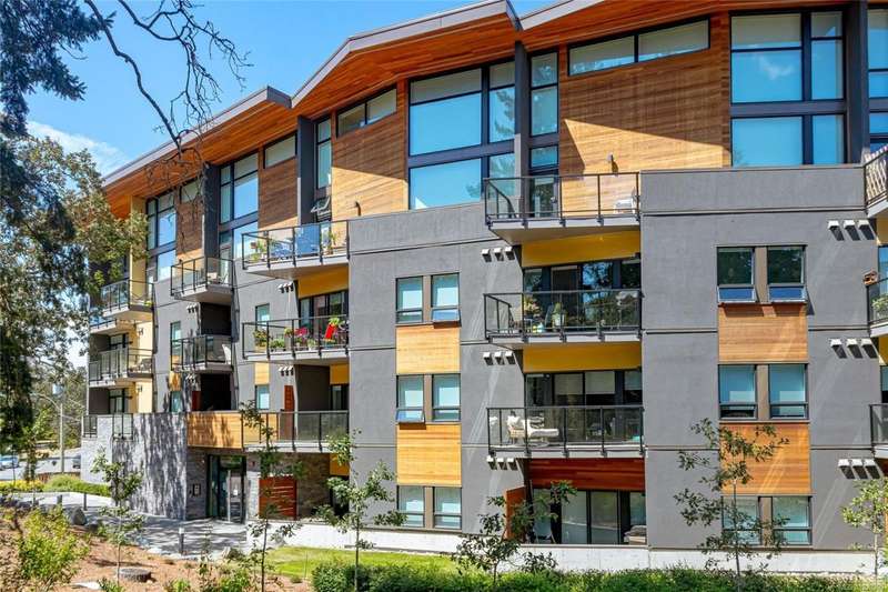 Priced to move in Today! This modern 1 BED+DEN home at OTTO?a Built Green Canada development, has shown sustainability in building materials and energy efficiency. Positioned on the quiet side of the building with peaceful treed views, this south-facing suite features an open-concept layout with 9-ft ceilings, a contemporary kitchen with SS appliances and quartz countertops, in-suite laundry, a high-efficiency heat pump for heating and cooling, a Spacious primary bedroom and a versatile den ideal for an office or storage. A rare BONUS-this unit includes a LARGE UG parking stall that is located in the parkade with additional space for a motorbike or appropriate storage, as well as a storage locker on the same level of the suite. Building perks: EV charging, courtyard, community garden, and bike storage. Short distance to UVic, Camosun, Saanich Centre, Swan Lake and everyday conveniences. Own it, Live it, and Love it!
