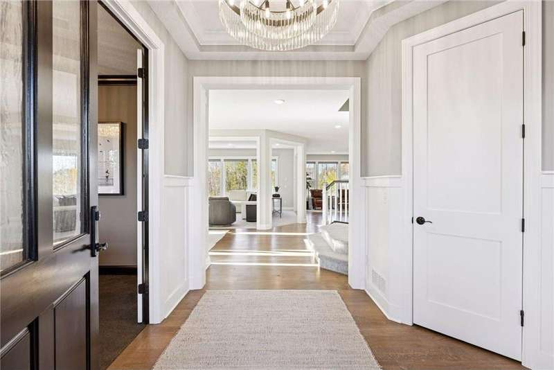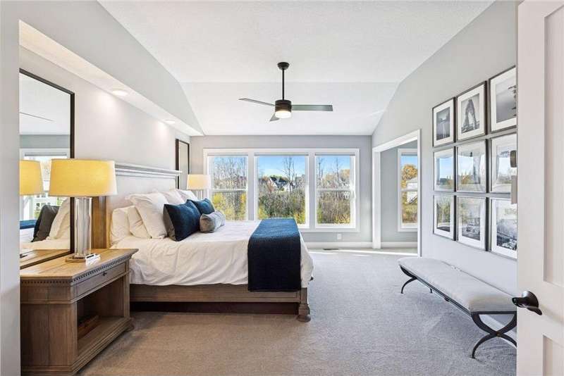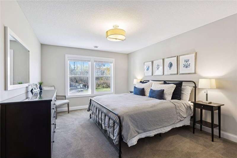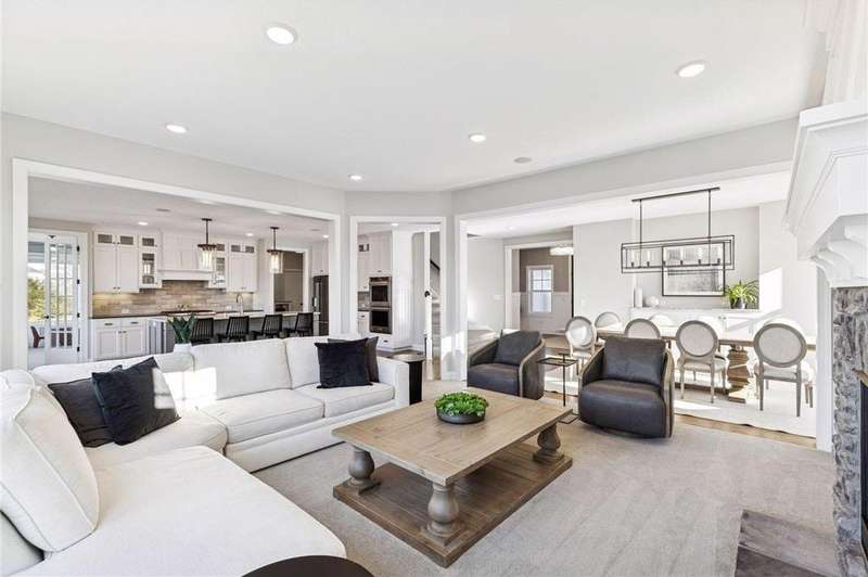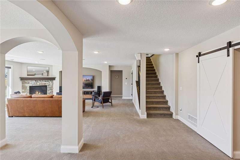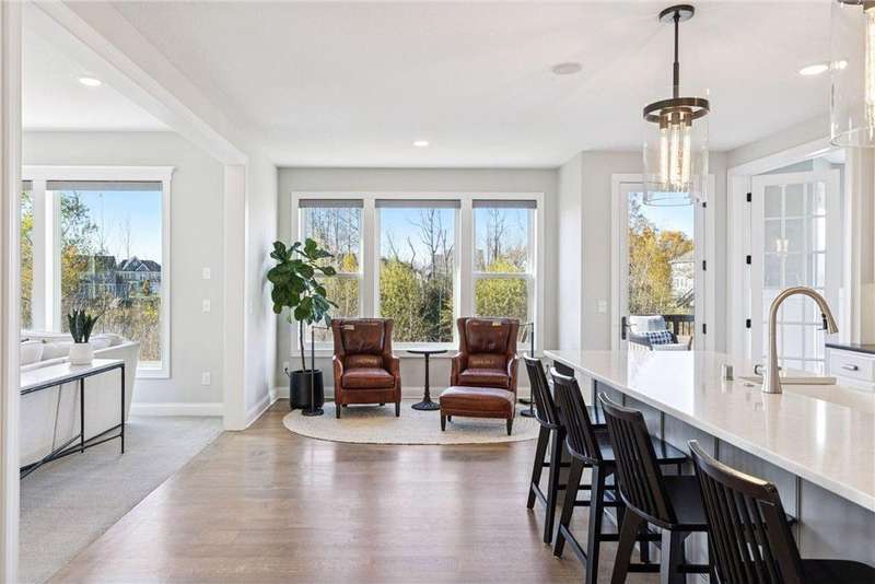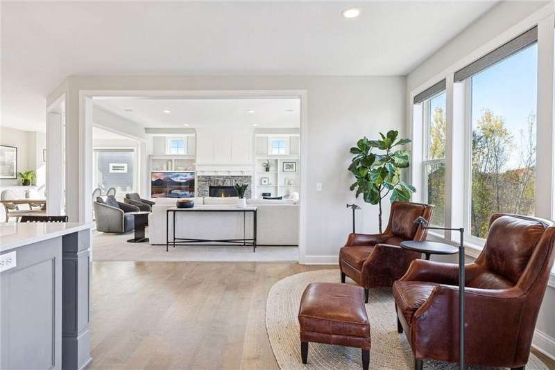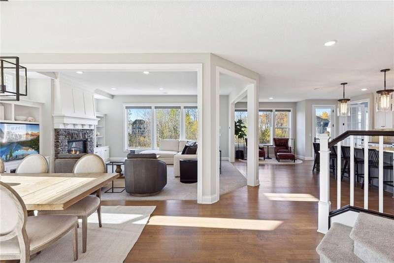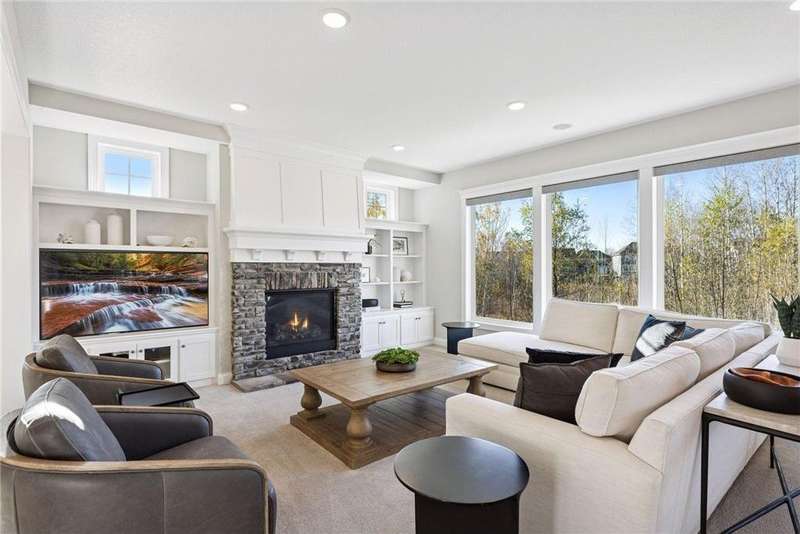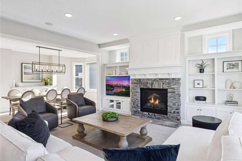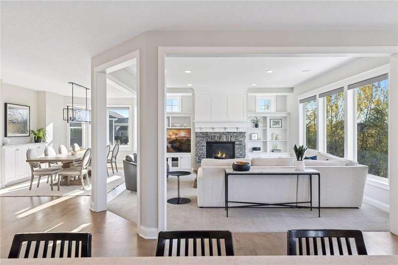 Nestled at the end of a quiet cul-de-sac, this home was a previous model and blends refined design, modern updates, and serene outdoor living. Impeccably maintained, the private backyard offers lush tree-lined views and a paver patio with built-in firepit, perfect for year-round enjoyment. Step inside to a warm, open floor plan designed for entertaining and everyday living. Recent lighting updates elevate the ambiance, while large windows flood the space with natural light and showcase the peaceful outdoor setting. The great room features a gas fireplace, custom built-ins, and floor-to-ceiling windows connecting seamlessly to the deck and yard. The gourmet kitchen impresses with a double wall oven, cooktop with vented hood, 2 dishwashers and a prep pantry functioning as a mini kitchen – ideal for hosting family or casual meals. A formal dining area and sunroom expand the living spaces, while the upper-level laundry/craft room with built-in cabinets offers convenience and organization. The primary suite is a luxurious retreat with a private sitting room featuring a gas fireplace, double vanities, jetted tub, separate walk-in shower, and a generous walk-in closet. The finished lower level adds versatility with a walk-out patio, wet bar with seating, and ample space for recreation or entertaining guests. With its model-home condition, thoughtful updates, premium finishes, 3 fireplaces, and a serene North Oaks location, this home is move-in ready and perfectly suited for elegant entertaining, family gatherings, or quiet relaxation in a private, tranquil setting.