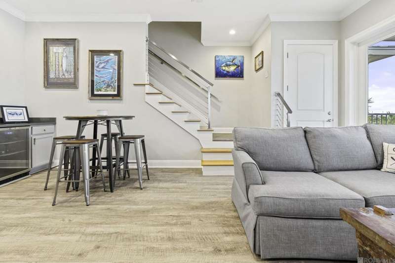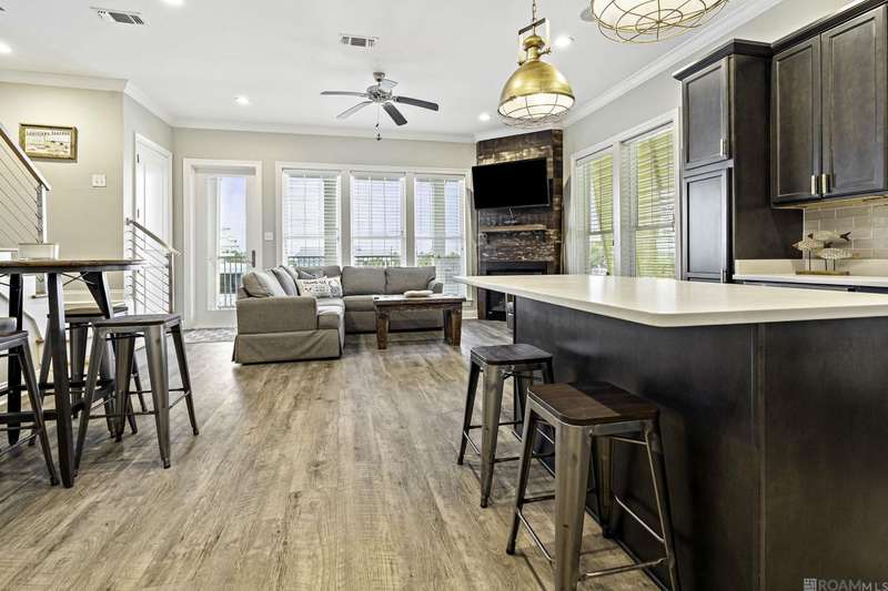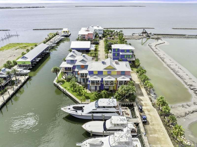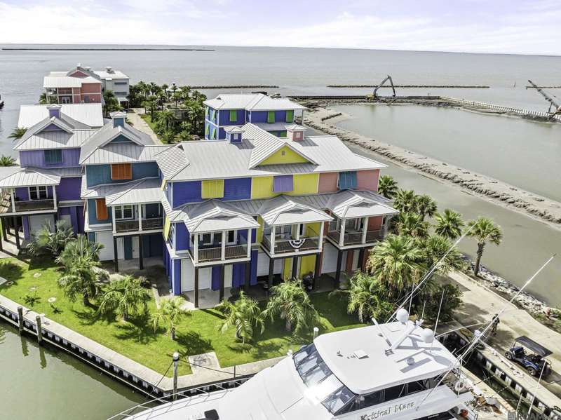 Live, dine, play and unwind by the bay! Experience coastal luxury and low-maintenance living in this spacious 4-bedroom, 3.5-bath condo located in the exclusive gated community of Hurricane Hole. Perfectly positioned on one of the island's only deep-water channels accommodating large fishing vessels, this home offers unparalleled convenience for fishing enthusiasts and water lovers alike. Inside, the open-concept layout features expansive bay views, a cozy corner gas fireplace, and stylish finishes throughout. The chef's kitchen is a showstopper with slab quartz countertops, classic subway tile backsplash, stainless steel appliances including a gas range, island seating, and a dry bar with a wine/beverage fridge?ideal for entertaining. The main-level primary suite offers a private retreat with double vanities and a custom walk-in shower behind a sleek frameless glass door. Throughout the home, you'll find soft-close cabinets and drawers for a touch of quiet luxury. Upstairs, three additional bedrooms provide plenty of space for family and guests?one with its own en suite bath for added privacy. The ground-level garage features three roll-up doors, a bathroom, elevator access, and plumbing for a sink?perfect for storing and prepping your gear after a day on the water. Residents of Hurricane Hole Marina & Resort enjoy premium amenities including a luxury pool, kids' splash pad, private beach access, a waterfront restaurant, three lively bars, world-class marina facilities, and fishing charters right at your doorstep. A boat slip with ice machine is available for purchase separately.