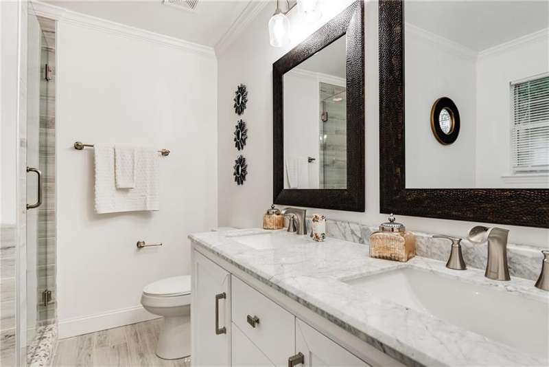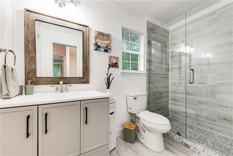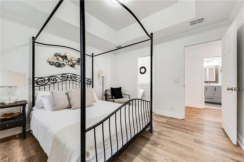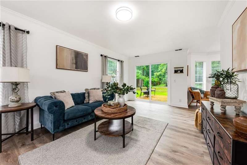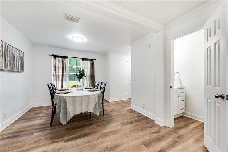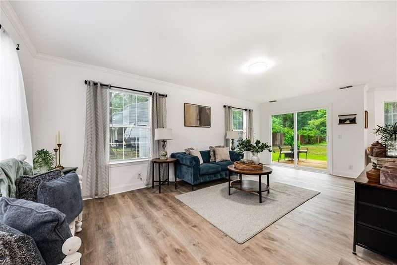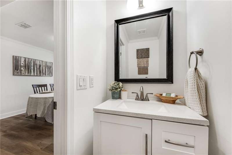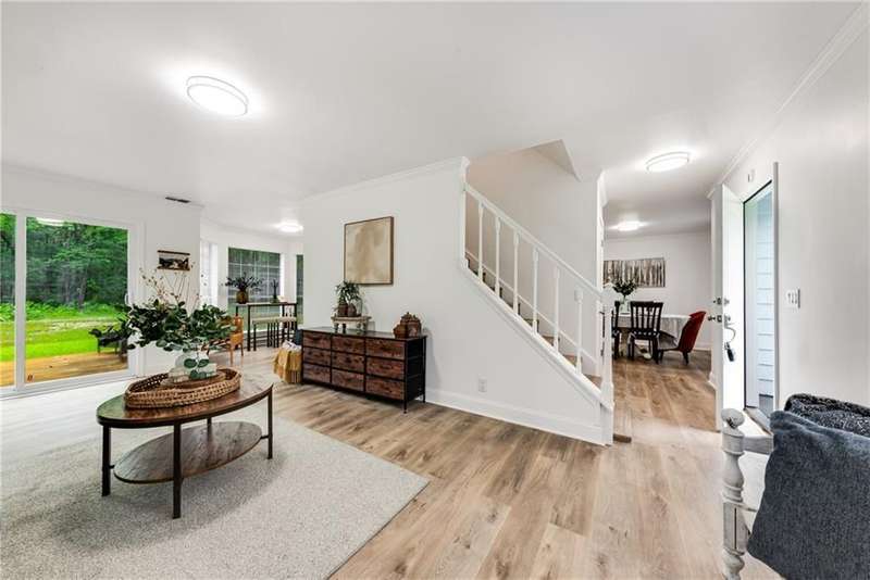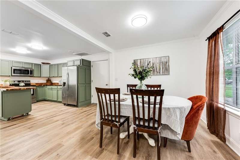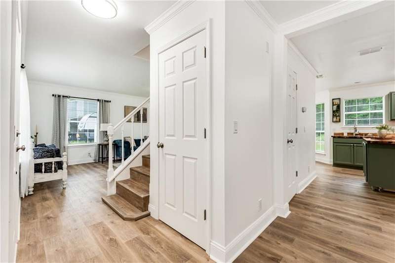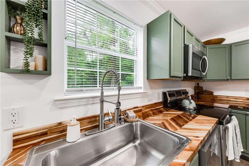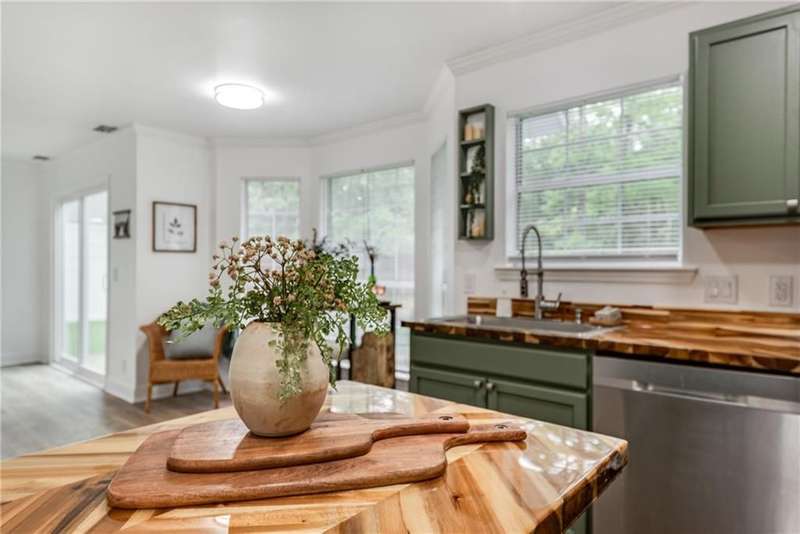 1-Year AHS Home Warranty Included! This beautifully updated 3-bedroom, 2.5-bath home sits on approximately half an acre surrounded by moss-draped oaks in the peaceful Harrietts Bluff community—just 15 minutes from NSB Kings Bay. Step inside to find new LVP flooring throughout the main level and owner’s suite, plus new carpet in the two upstairs bedrooms. The kitchen features chevron-patterned butcher block countertops, a movable island, stainless steel appliances, and cabinetry painted in a warm, woodsy green. A custom walk-in pantry with open stained shelving is both functional and stylish—pretty enough to leave the doors open. Enjoy both a formal dining room and a breakfast nook with a bay window overlooking the backyard. A renovated half bath on the main floor adds guest convenience, while the living room opens through new sliding glass doors to a spacious back deck and fenced yard, perfect for outdoor entertaining. Upstairs, the owner’s suite showcases a tray ceiling, walk-in closet, and a renovated bath with double vanity, tiled shower, slipper tub, and wood-look tile flooring. The guest bath also features a unique tiled shower and matching wood-look tile. Additional highlights include crown molding throughout, a two-car garage with cabinets and laundry hookups, washer and dryer conveying with the property, a tankless water heater, new HVAC, and a metal roof. The freshly sealed garage floors add a clean, finished look. Located in Flood Zone X (no flood insurance required) and outside city limits (no city taxes), this property offers practical value with a serene setting. You’re just minutes from the Harrietts Bluff deep-water boat ramp and less than 10 minutes to Kingsland amenities—including Chick-fil-A! This home blends comfort, convenience, and style—with all the major upgrades compete!