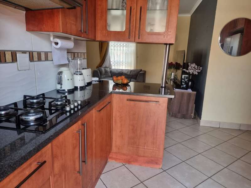 This home features 3 bedrooms and 2 bathrooms, making it an excellent choice for families or first-time buyers. The open-plan lounge flows into a neatly fitted kitchen with modern finishes, including a gas hob, eye-level oven, and breakfast counter – perfect for both daily use and entertaining. Additional features include burglar bars for peace of mind, a partially paved yard for easy upkeep, and a carport for secure parking. A fresh coat of paint will make all the difference, allowing you to add your personal touch and truly make this home your own. Don’t miss this value-packed opportunity in the growing Kirkney area!