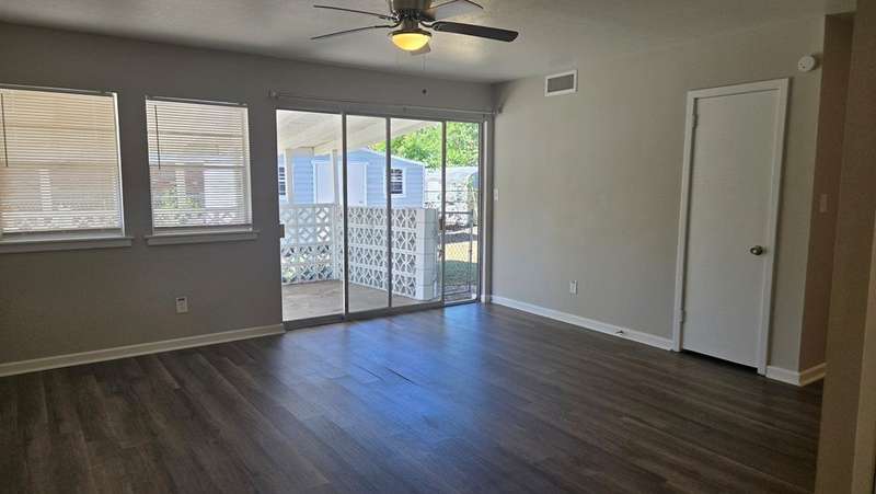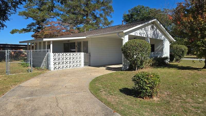 Don't miss this charming three-bedroom, two-bath home situated on a spacious corner lot. The covered back porch, accessible from the open-concept living and dining area, makes this property perfect for entertaining family and friends year-round, regardless of the occasion. Need more space for gatherings? The expansive front yard offers plenty of additional room. The galley-style kitchen features a separate oven and cooktop, giving you extra flexibility and workspace when preparing meals. (The dryer hook-up in the utility room under the carport and the washer hook up is located in the kitchen.)