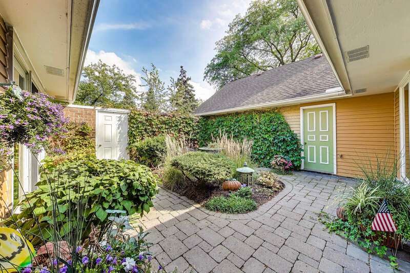 Welcome to your new home in the desirable Fairfax Village! This stunning, move-in ready ranch townhome offers the perfect blend of comfort and style with its spacious, single-level living. As you approach the property, you are greeted by a lovely private patio featuring lush landscaping and elegant brick pavers, creating a serene outdoor space for relaxation or entertaining. Step inside to discover a generous living room and dining area bathed in natural light, thanks to the window box with seating and double set of patio doors. The beautiful hardwood floors and crown molding throughout add an extra touch of sophistication. Your culinary dreams will come true in the updated kitchen ('18), showcasing slate floors, granite countertops, dual dishwashers, a Subzero refrigerator, a Viking stove, and a warming drawer. The convenient breakfast bar is perfect for casual meals or gatherings, while the open concept design seamlessly connects to the inviting family room, complete with floor-to-ceiling built-ins and a wood-burning fireplace-ideal for those cooler evenings. Retreat to the serene primary bedroom, featuring plantation shutters, an organized walk-in closet, and a luxurious bathroom with a marble walk-in shower and heated floors. A second charming bedroom with window box seating and hardwood floors, along with an additional full bathroom equipped with a tub, complete the main level. Venture down to the basement, where the possibilities are endless! Whether you envision a recreation space, gym, home office, or whatever your heart desires, this area currently provides ample laundry facilities and abundant storage. With easy access to expressways and proximity to Schaumburg's vibrant scene of restaurants, nightlife, shopping, and more, this townhome truly has it all. Recent updates include: roof (~2016), windows/Anderson (~2013).