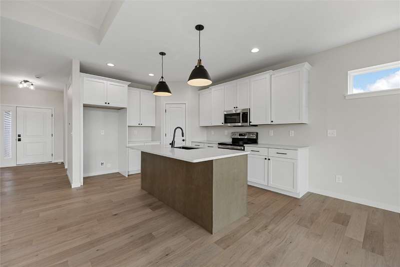 This new-construction condo in Marion offers an open-concept floor plan with over 2,100 square feet of finished living space. The main level features engineered hardwood flooring, quartz countertops, stainless steel appliances, and a corner pantry. There are two spacious bedrooms on the main floor along with a full bath, laundry room, and access to a covered deck overlooking the landscaped yard with full sod. The finished lower level includes a third bedroom, full bath, and large family room, providing plenty of space for relaxing or entertaining. Additional highlights include a three-stall garage and the opportunity for buyers to choose the final selections to make this home their own. Sellers would consider a trade on this home. Price subject to change not all selections have been made.