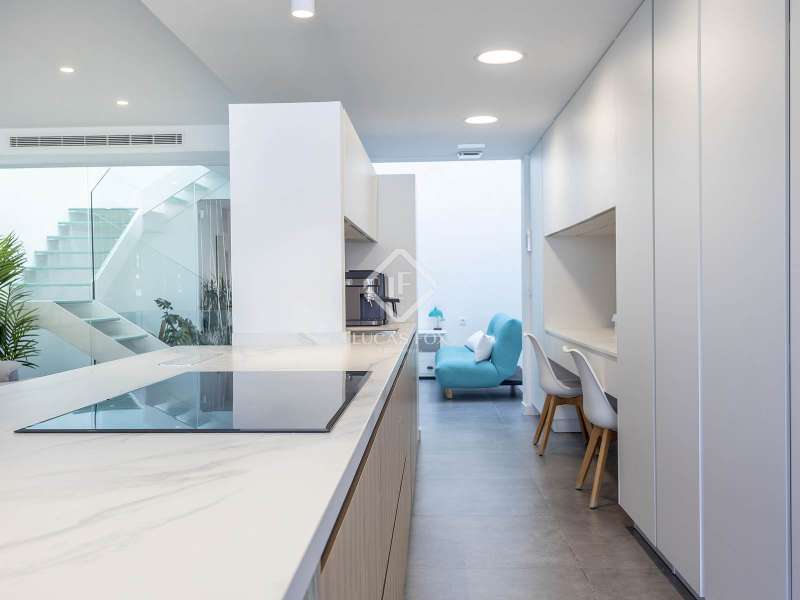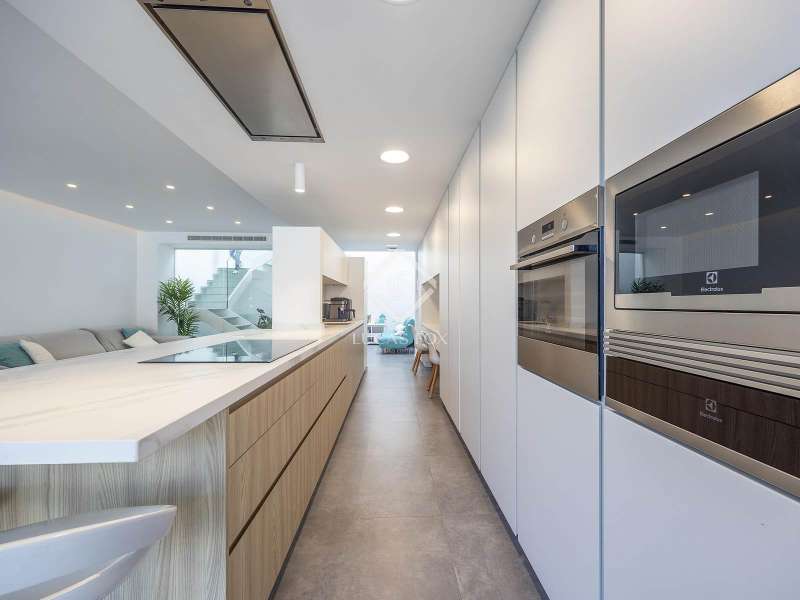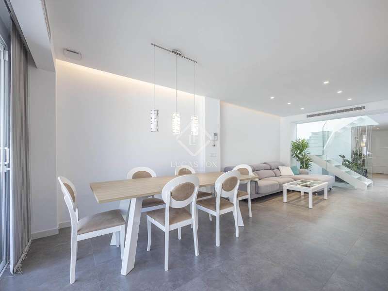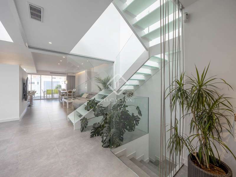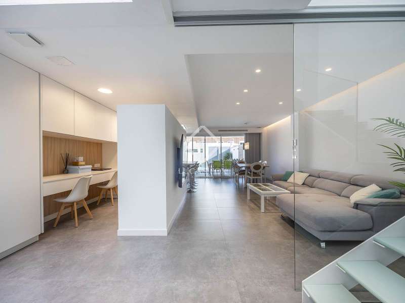 Discover this ideal 362 m² townhouse located in one of the most sought-after residential areas of Canet de Berenguer, just minutes from the marina and the beach. A modern, bright, and high specification property , designed for maximum comfort and energy efficiency. The house features a spacious entrance hall leading to an elegant designer staircase with glass steps, bringing a sense of spaciousness and natural light to the entire property. It comprises four bedrooms (two of which are doubles, and one with an en-suite bathroom ), and a total of four full bathrooms, all with top-quality finishes. The main living area features a fully equipped open-plan kitchen connected to the living-dining room , with direct access to the covered and uncovered terrace, perfect for enjoying the outdoors year-round. Exterior, you'll find an automated saltwater pool, a covered exterior kitchen, and a pleasant relaxation area.