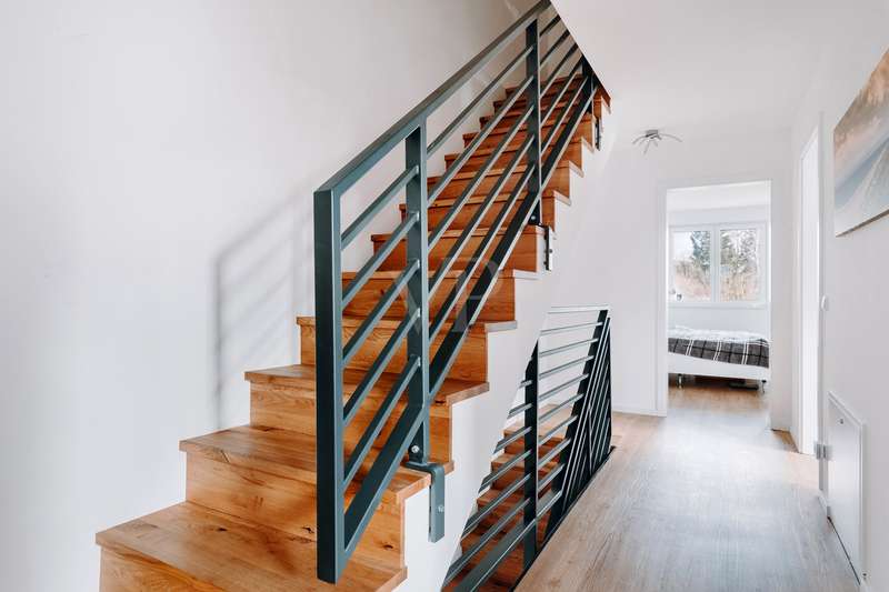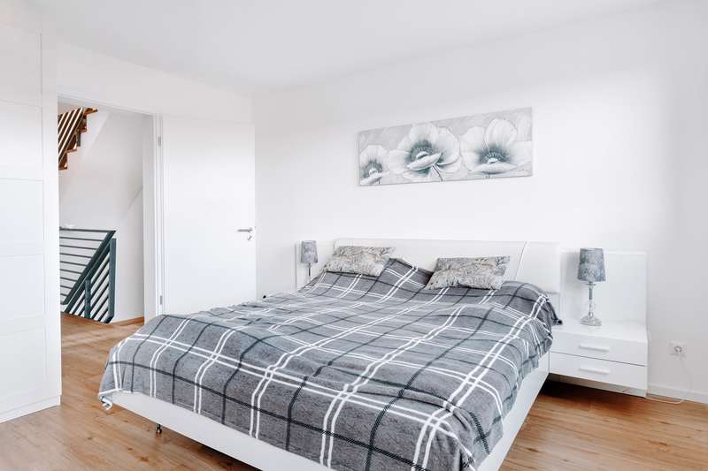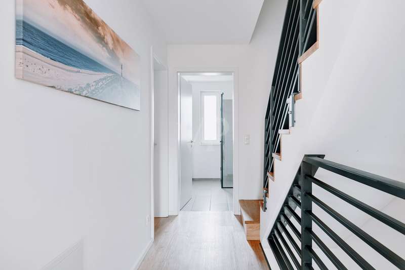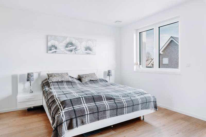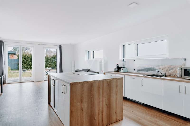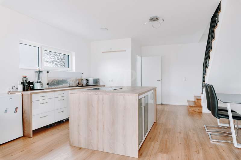 This modern and as-new semi-detached house from 2021 in Echem impresses with its outstanding architecture and is located in a high-quality residential area with a total of four semi-detached houses. With approx. 149 m² of living space spread over three floors, it offers a well thought-out room concept and maximum living comfort. Five generous rooms, including three spacious bedrooms, make the house ideal for young families, commuters or couples who want to enjoy life in the countryside. The quiet cul-de-sac location creates a relaxed living atmosphere and ensures a safe and harmonious environment. The careful arrangement of the houses and the well-kept surroundings create a harmonious overall picture that invites you to feel at home. Thanks to the high-quality construction and modern fittings, this semi-detached house stands out particularly within the residential area. The location close to nature rounds off the living concept and makes this house an ideal retreat with an exclusive residential character. The first floor offers a spacious living and dining area with an open kitchen. The modern fitted kitchen has a central cooking island with integrated oven and dishwasher. There is direct access to the south-east-facing terrace from the living area. The first floor is complemented by a guest WC, a checkroom and a utility room (HWR) with washing machine connection. The utility room also provides access to the garden and the north-west-facing terrace. There are three bedrooms on the upper floor, including a spacious master bedroom and two flexible children's rooms. The bathroom is equipped with a floor-level rain shower, a towel dryer and stylish tiles. The attic offers approx. 30 m² of versatile use and is ideal as a hobby room or additional bedroom. The area is complemented by a practical storage space, which is separated by a sliding door. The entire property is fitted with high-quality tiles, elegant vinyl parquet and wooden flooring. Energy-efficient underfloor heating combined with a modern heat pump ensures a pleasant living atmosphere. The house achieves energy efficiency class A+ and has an extremely low final energy requirement of just 12.8 kWh/(m²a). It is also equipped with a central ventilation system. The freehold plot extends over approx. 267 m² and offers an idyllic retreat in the countryside with its garden area. There is a private parking space directly in front of the terrace, and two additional outdoor parking spaces are available for convenient and flexible parking. This property combines modern architecture, high-quality fittings and energy-efficient construction. It is the ideal choice for discerning buyers who appreciate living close to nature in a quiet, green environment.