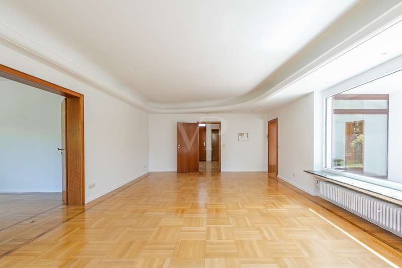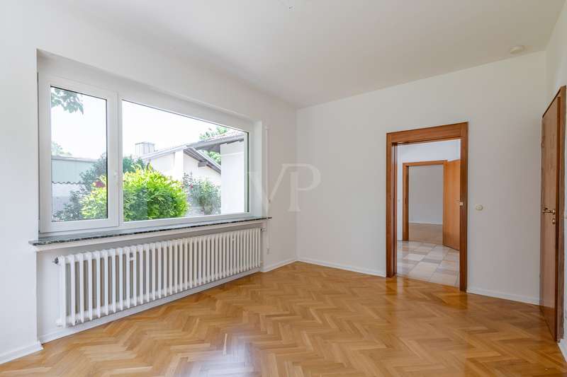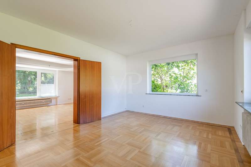 Welcome to a particularly charming property that is ideal for families with high standards. This well-kept detached house was built in 1959 and is located on the sought-after Geigersberg, nestled in a quiet cul-de-sac. With a generous living space of around 215.42 m² and a sizeable plot of around 816 m², the property offers plenty of space for individual design options. The angled bungalow impresses with its intelligent room layout and fittings. The light-flooded living area is the central point of the house and creates an inviting atmosphere with its large window fronts. The windows have been fitted with double glazing, which ensures good insulation. Particularly noteworthy are the spacious entrance hall and the elegant parquet flooring, which lend the house a timeless elegance. Two terraces and a balcony provide additional living comfort and offer plenty of opportunities to relax and linger. The well-tended sun garden with mature trees is another highlight and invites you to linger outdoors. A separate terrace room makes it possible to enjoy the proximity to nature even in bad weather. The property has a spacious bathroom and a guest WC, which adds to the comfort. The spacious kitchen with adjoining storage room leaves nothing to be desired and offers enough space for culinary development. A granny apartment with an area of 48 m² extends the possible uses and could ideally be used as an office or for visitors. The top floor also offers expansion reserves for additional space requirements. The heating is provided by an oil-fired central heating system, which ensures cozy warmth. However, a renovation of the house would be advisable in order to meet current living trends and exploit the full potential of the property. There is a spacious, extra-long garage for vehicles, which offers enough space for a large vehicle and provides additional storage options. This property on Geigersberg offers you the opportunity to live in a sought-after location while benefiting from the advantage of a quiet cul-de-sac location. It combines the best of both worlds: Proximity to nature thanks to the wonderful garden area and generous living space for comfortable living. A viewing of this property will convince you of its potential and open up new perspectives. Don't hesitate to seize this opportunity and arrange a viewing today to see the benefits of this attractive property for yourself.