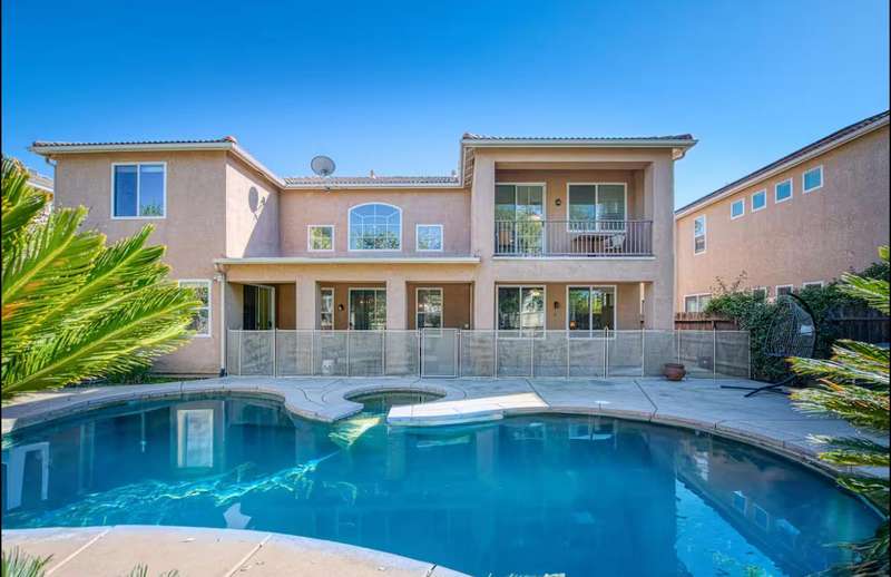 This spacious Granville home,built in 2005, offers 5 bedrooms and 3 baths across 3,596 sq. ft. of living space. The flexible layout includes two bedrooms downstairs,ideal for guests, in-laws, or a home offic, plus three bedrooms upstairs, including a generous spacious primary suite. The open kitchen, dining, and 2 living areas create the perfect space for family gatherings. Outside, enjoy a sparkling pool and spa on a large 9,360 sq. ft. lot, designed for relaxation and fun. Located in the award-winning Clovis Unified School District, this home is perfect for a growing family.