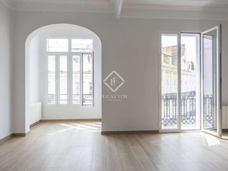 Lucas Fox presents this exclusive apartment on the fourth floor of an iconic and renowned building in the area, on Gran Vía in Valencia. This spectacular 111 m² apartment features original features and a high-quality renovation . The original moldings, finishes, and spacious spaces give this property a unique and sophisticated character. The property has three bedrooms, including a main bedroom with a private bathroom and a large dressing room, and two complete bathrooms. It also features a living-dining room with access to a balcony with unobstructed views and an open kitchen. Every detail has been carefully considered. It features radiator heating and ducted air conditioning. A unique opportunity to live in a high-end environment, in an iconic historic building.