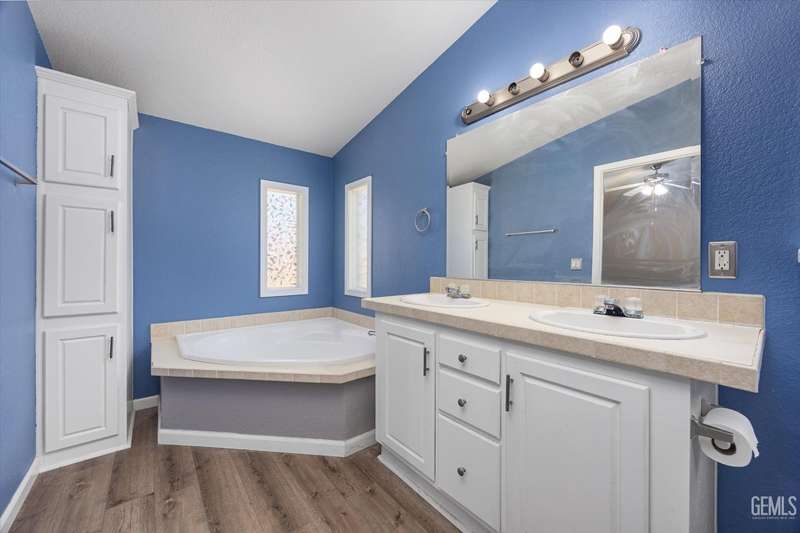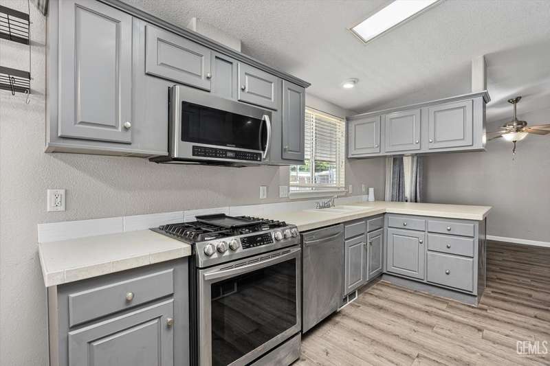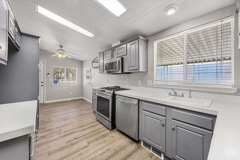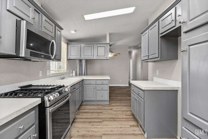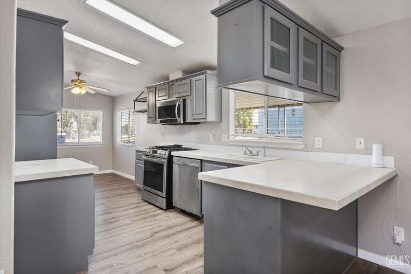 Welcome to the charming gated community of Smoke Tree Mobile Estates. This lovely manufactured home offers beautiful wood like vinyl plank flooring, an updated guest bathroom, a sizable kitchen featuring lots of cabinet space and stainless appliances, and an amazing primary suite bathroom with soaking tub. Almost 1,300 sq feet of living space, this home includes 2 bedrooms plus an office, an indoor laundry area, and a sizable front and back yard. Park amenities include: Pool, Club House. Sparkling Pool, fitness studio, and dog park.