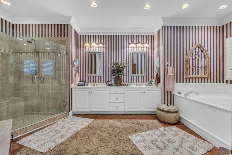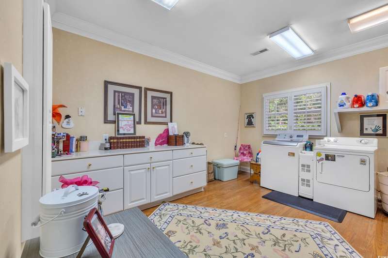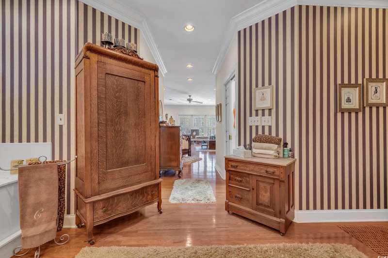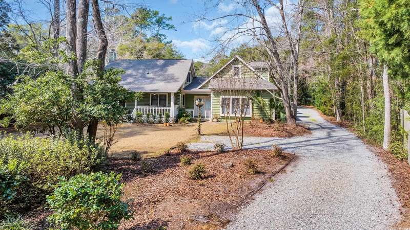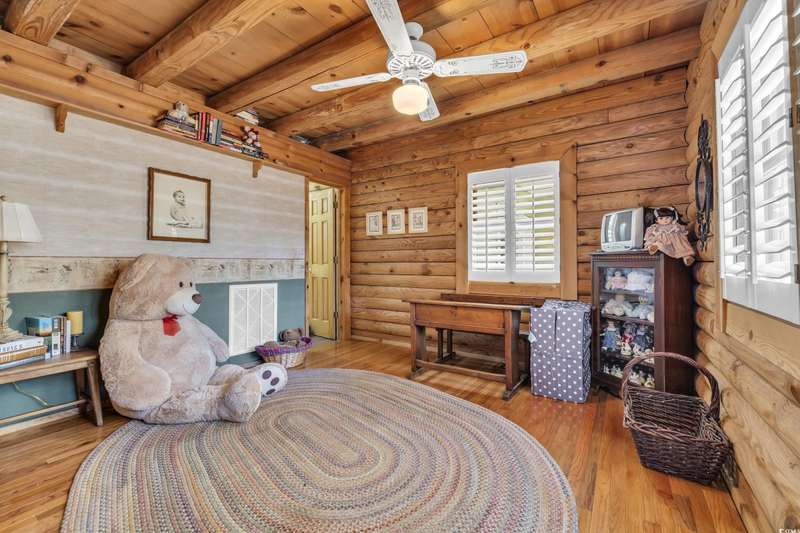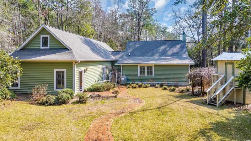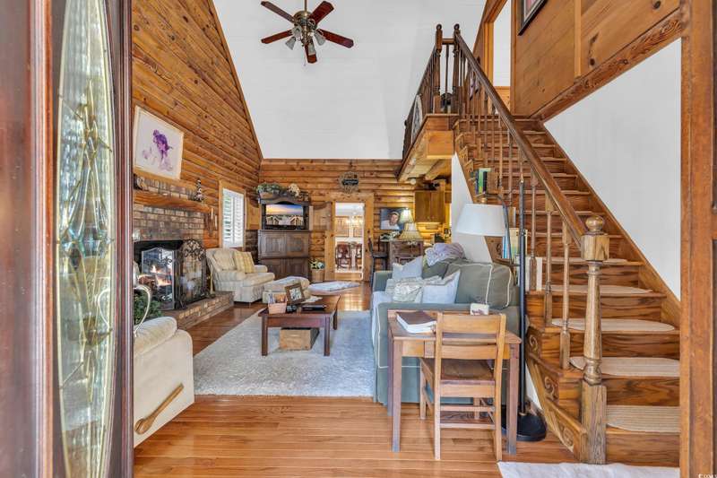 Tucked away in a gated, secluded area, this beautifully maintained 4-bedroom, 4.5-bath log cabin blends Lowcountry charm with modern convenience. Originally built in 1982 and thoughtfully expanded in 2002 using timber from the property, this home sits on a serene one-acre lot surrounded by majestic oaks and mature landscaping. Inside, plantation shutters throughout enhance the home’s rustic elegance. The spacious owner’s suite features a propane fireplace, two walk-in closets, walk-in shower and a luxurious soaking tub. The unique layout offers two separate upstairs areas one with a bedroom and half bath, and another with a spacious loft, bedroom, and full bath, providing versatile living space. This home boasts two distinct sitting areas, offering both functionality and flexibility. One serves as a cozy retreat, perfect for relaxing by the fire, while the other is ideal for gathering and entertaining. A generous laundry room and ample storage throughout add to the home's convenience. Out back, a detached mother-in-law suite with a full kitchen and bath provides a private space for guests or extended family. The property also features a large built-in wall safe, ensuring extra security and peace of mind. The oversized two-bay garage is perfect for RV or boat storage, a workshop, or additional storage needs. Ideally located just minutes from Wacca Wache Marina, the Marsh Walk, Huntington Beach State Park, and Brookgreen Gardens, this one-of-a-kind log cabin offers both privacy and easy access to the best of Murrells Inlet. Don’t miss this rare opportunity—schedule your private tour today!