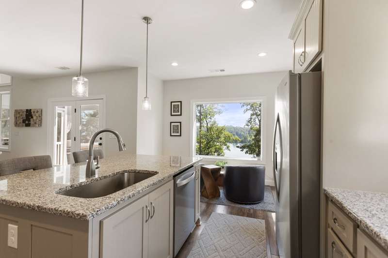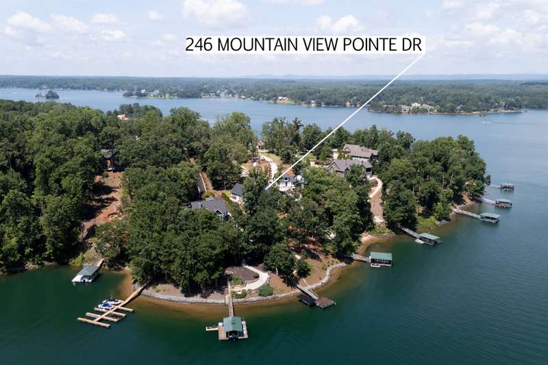 246 Mountain View Pt: If you've been looking and hoping for a newer home with deep water, great lake and mountain views, close to lakefront dining and town, and under $2 million, well, you might have just found it! This home was completed in 2022 and features an open main level floor plan and a walkout lower level with great living and storage space. Upon entry, you're greeted by natural light and blue Lake Keowee water views. The open floor plan is great for entertaining as well as everyday living. The living room has a stone fireplace with gas logs and opens up to the covered and screened porch. The kitchen features a gas range/oven, built-in stainless appliances, and a prep island with sink. You can dine with incredible lake and mountain views in the breakfast area, informal dining space between the kitchen and living room, or on your screened porch--whatever you prefer or whatever best suits the season. The owner's suite is privately located on the left side of the main level and has a large picture window to frame the lake view. There are two clothes closets, a water closet, and a walk-in shower to round out the owner's suite. A desirable second bedroom and full bath are located on the right side of the main level, so you can have guests who prefer not to navigate stairs visit. The mud/laundry room is ample in size and leads to your two-car garage that is deep enough for a full-size truck. The lower level provides a 3rd bedroom and 3rd full bath, great recreation space, a heated/cooled storage/mechanical space, another storage mechanical space, and an area with access to the outside that is perfect to store your lake toys, golf cart, and more. The current owners use the rec space as a home gym, but it could be a perfect second living room, game room, or whatever suits your lifestyle best. The unfinished space totals approximately 839 square feet, so there's room to finish the space into a bedroom/bunk room, and the existing septic system is designed for 4 bedrooms, so you wouldn't need to make any modifications there. The concrete path to the dock is easy to walk or ride, and there's a larger turnaround at the bottom...also a perfect place to watch the sunset over the Blue Ridge Mountains. This property previously permitted for a 26X30 Covered dock with 50' walkway (and likely will again), but the current owners preferred an oversized swim platform with a Sunstream SLX6500 covered lift that will convey with the property--if you'd prefer to replace the dock with a covered dock, the seller will accept a contingency to obtain that permit prior to closing. The water is deep and clear at the dock, and there are beaches right across the cove to paddle board, kayak, swim, or boat. Mountain View Pt is an established community with high-end homes and is located a short golf cart ride to the Lighthouse Restaurant, Cabana, Sip and Swing.