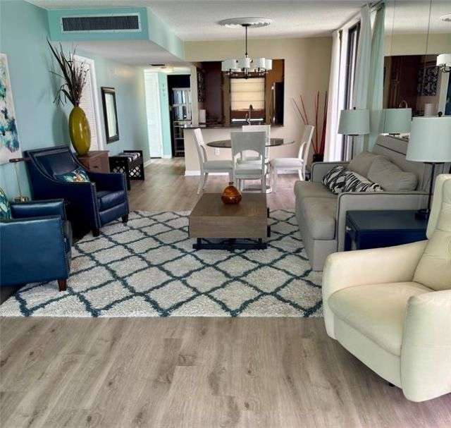 Beautifully, fully furnished Condo on corner 5th floor! L - Shaped balcony and floor to ceiling windows through out gives you a lot of light and must have water views. The corner units are the largest in the complex. Open concept kitchen, dining and living room with water views straight through to multiple balconies. Enjoy the view from the kitchen! Complex has 2 pools, Fitness room, beach access, Tennis, Pickle ball, salt spray car wash, RV/trailer/boat storage and optional individual storage unit. Close to restaurants, shopping and causeway. Must see to appreciate. Is currently rented through 1/31/26 - prorated income will go to buyer at closing.