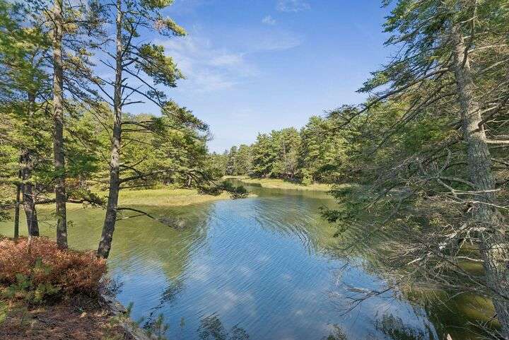 Set at the end of a half-mile private drive, this remarkable 5-acre property offers exceptional privacy, natural beauty, and an authentic coastal Maine lifestyle in one of Woolwich's most desirable settings. The 2,500± sq. ft. residence, built in 1977 and thoughtfully updated, includes 3-4 bedrooms, 2.5 baths, a dedicated office, and a versatile bonus room. Inside, sweeping west-facing views capture stunning sunsets, while granite countertops and a mix of slate and maple flooring highlight the home's timeless character. A spacious living room and large dining room provide inviting spaces for gatherings, and a classic farmer's porch offers a peaceful place to take in the serene surroundings. Outdoors, the property is equally captivating. With hundreds of feet of waterfront, enjoy direct access to Maine's coastal waters for paddling, fishing, or exploration. Eagles, osprey, and other native wildlife are frequent visitors. The land features mature red oaks, rare pines, and beautifully maintained open space surrounded by natural woodland. An existing barn offers possibilities for equestrian pursuits, hobby farming, or generous storage, while abutting conservation land ensures lasting privacy and natural beauty. With its setting, craftsmanship, and connection to nature, this Midcoast retreat presents a rare opportunity to enjoy the best of Maine's coastal lifestyle, just minutes from Wiscasset, Bath, and Brunswick. ~47 additional acres available for sale.