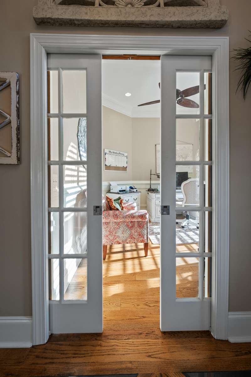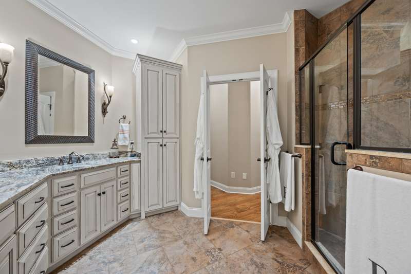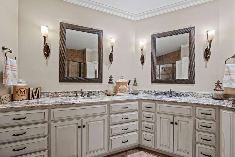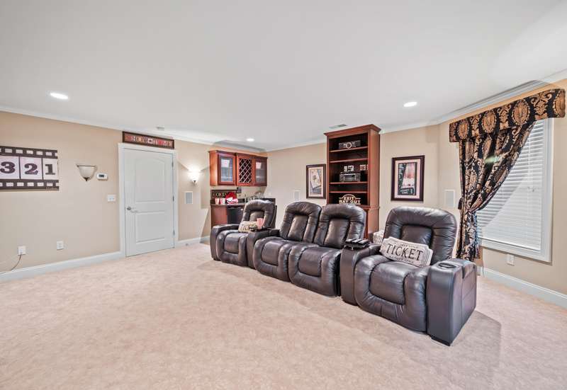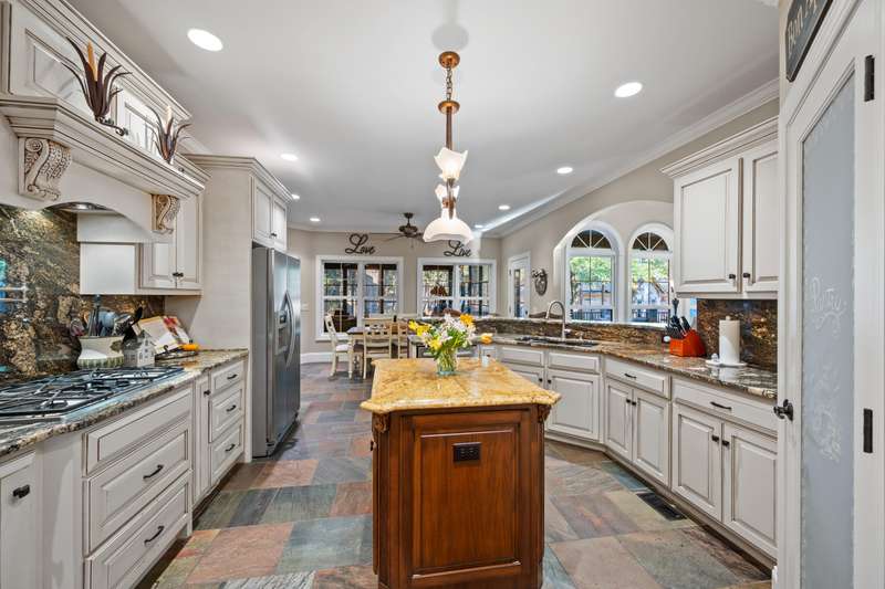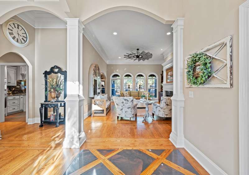 Superb Architecture • Elevated Features • The Cedar Creek Luxury Experience Discover exceptional architecture and elevated craftsmanship throughout this beautifully designed Cedar Creek luxury home. From its graceful arched windows to its sought-after 3-car garage and refined custom finishes, this property immediately stands apart. Step through a welcoming foyer featuring inlaid wood-and-tile flooring, arched openings, and extensive trim detail that sets the tone for the home's warm, elegant living spaces. A private office offers pocket doors and rich judges paneling, while the formal dining room impresses with coffered ceilings, wainscoting, and the perfect ambiance for intimate dinners or festive gatherings. The chef's kitchen is a standout—complete with slate flooring, center island, expansive granite surfaces, under-cabinet lighting, pot filler, gas cooktop, breakfast bar, and a charming custom-door pantry. A sunlit breakfast room and spacious living room with gas fireplace and built-ins add effortless flow and comfort. Movie nights reach new heights in the home theatre, featuring a wet bar, projector, and screen. Nearby, the large flex room/FROG with walk-in closet and full bath provides versatility—ideal for guests, hobbies, a studio, or private escape. The main-level primary suite is a retreat of its own with tray ceiling, sitting area, large walk-in closets, and French doors leading to a spa-inspired bath with dual shower, pocket-door water closet, and generous linen storage. A split-bedroom layout includes two additional main-level bedrooms connected to a well-appointed shared bath. Enjoy indoor-outdoor living year-round in the 3-season room with gas fireplace, or relax on the stamped-concrete patio with a gas line ready for your grill. Exterior lighting and a full sprinkler system enhance the beautifully maintained outdoor spaces. The 3-car garage includes a utility sink, and the Tesla charger and pool table are negotiable. Additional upgrades include a manifold water system and premium construction details throughout. Cedar Creek Lifestyle Residents of Cedar Creek enjoy miles of green space, walking trails, a resort-style Olympic-sized pool, community center, tennis and pickleball courts, and dining at The Pub at Cedar Creek. Golf enthusiasts may join the prestigious Cedar Creek Golf Club. This is a community designed for both active living and peaceful retreat. Buyer to verify all information deemed important, including but not limited to measurements, square footage, zoning, and schools. Buyer to verify all information deemed important, including but not limited to measurements, square footage, zoning, and schools.