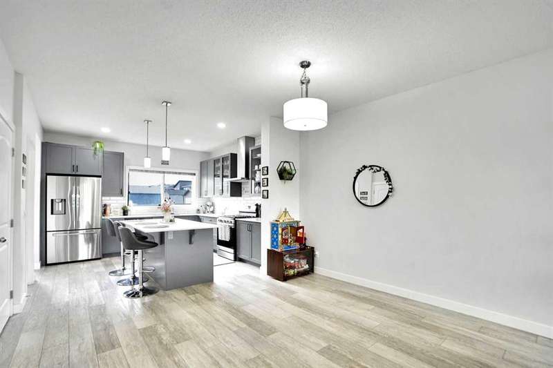 OPEN HOUSE; SAT 12 TO 2PM | Luxurious and Upgraded Home in a Prime Location | 3 Bed | 2.5 Bath | Side Entrance | Elegant Glass Kitchen Cabinets | Two Basement Windows | Premium Finishes Throughout | This beautifully designed luxury residence in Calgary’s master-planned community of Cornerstone showcases exceptional craftsmanship, high-end finishes, and a functional open-concept layout. The main floor features a bright and spacious living area with large windows, premium flooring, and an upgraded kitchen complete with elegant glass cabinets, chimney-style hood fan, gas stove, stylish backsplash, walk-in pantry with French doors, and stainless steel appliances. Upstairs, you’ll find three spacious bedrooms and a generous bonus room. The primary suite includes a walk-in closet and a private ensuite with a sleek standing shower, while a full 3-piece bathroom with tub serves the additional bedrooms. A separate side entrance and two basement windows provide excellent potential for future basement development. The exterior is thoughtfully equipped with HOT & COLD WATER TAPS in the backyard, ideal for gardening or outdoor cleaning needs. Conveniently located within walking distance to Chalo FreshCo, Tim Hortons, Dollarama, and bus stops. Close to the future Dashmesh Culture Centre GURUDWARA SAHIB site and planned C-TRAIN STATION. Easy access to major routes, the Amazon warehouse, and Calgary International Airport. A perfect combination of luxury, comfort, and practicality—ideal for growing families or investors.