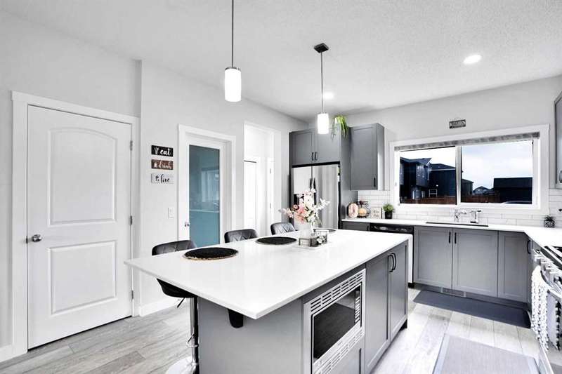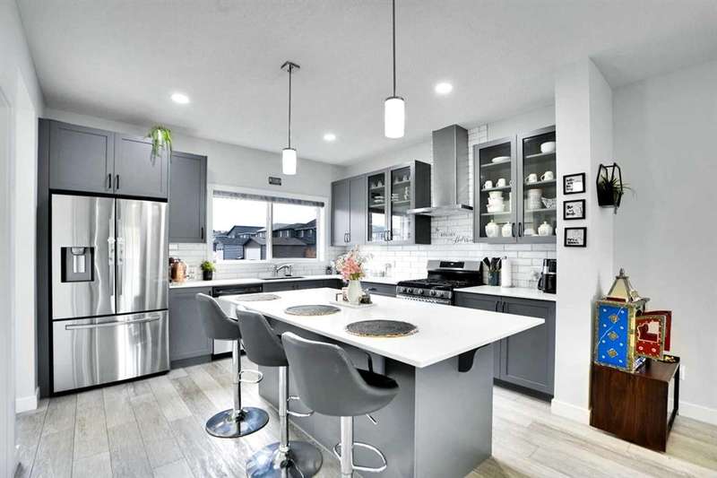 OPEN HOUSE; SAT 12 TO 2PM | Luxurious and Upgraded Home in a Prime Location | 3 Bed | 2.5 Bath | Side Entrance | Elegant Glass Kitchen Cabinets | Two Basement Windows | Premium Finishes Throughout | This beautifully designed luxury residence in Calgary’s master-planned community of Cornerstone showcases exceptional craftsmanship, high-end finishes, and a functional open-concept layout. The main floor features a bright and spacious living area with large windows, premium flooring, and an upgraded kitchen complete with elegant glass cabinets, chimney-style hood fan, gas stove, stylish backsplash, walk-in pantry with French doors, and stainless steel appliances. Upstairs, you’ll find three spacious bedrooms and a generous bonus room. The primary suite includes a walk-in closet and a private ensuite with a sleek standing shower, while a full 3-piece bathroom with tub serves the additional bedrooms. A separate side entrance and two basement windows provide excellent potential for future basement development. The exterior is thoughtfully equipped with HOT & COLD WATER TAPS in the backyard, ideal for gardening or outdoor cleaning needs. Conveniently located within walking distance to Chalo FreshCo, Tim Hortons, Dollarama, and bus stops. Close to the future Dashmesh Culture Centre GURUDWARA SAHIB site and planned C-TRAIN STATION. Easy access to major routes, the Amazon warehouse, and Calgary International Airport. A perfect combination of luxury, comfort, and practicality—ideal for growing families or investors.