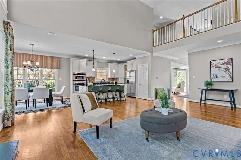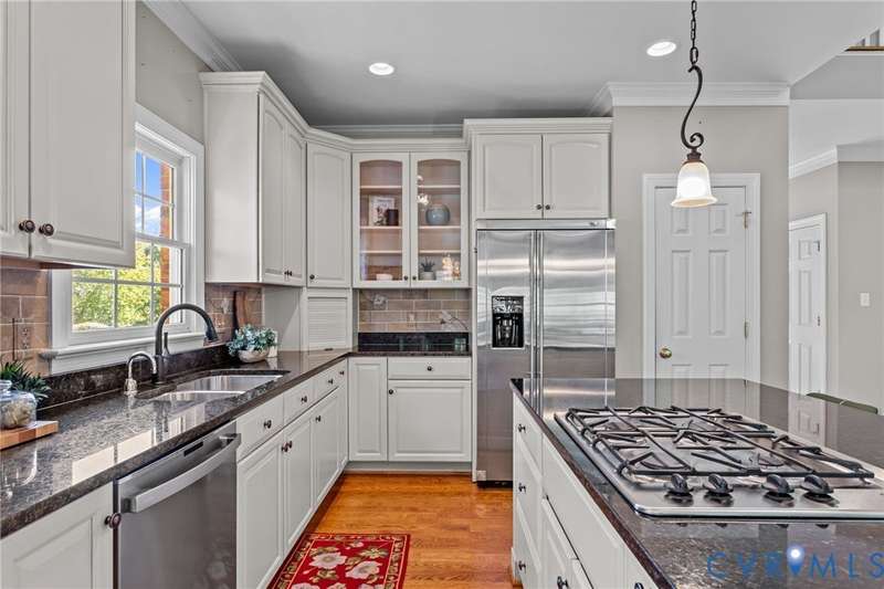 Low-maintenance luxury living awaits at 507 Hunt Field Road, nestled in the highly sought-after Kinloch community in Manakin Sabot! This stately custom all-brick home offers over 4,300 sq. ft. of thoughtfully designed space, including 4 bedrooms, 4.5 baths, and a versatile bonus room. Enter to a grand two-story foyer filled with natural light, showcasing beautiful hardwood floors throughout the main level. The spacious family room impresses with soaring ceilings, abundant windows, and an open flow to the kitchen and casual dining area. A stunning all-season sunroom at the rear of the home overlooks the private, wooded backyard. The formal dining room, framed by a bay window, sits just across the foyer from the formal living room. Adjacent, a home office with glass French doors provides privacy for work. Down the hall, you'll find a powder room, laundry room with cabinets and sink, and direct entry to the oversized two-car garage, that's complete with custom cabinetry and updated flooring. The first-floor primary suite is a true retreat, featuring a tray ceiling and a dedicated dressing area with dual custom walk-in closets. The luxurious ensuite bath feels like a spa with two vanities, dual water closets, a shared walk-in shower and soaking jacuzzi tub. Upstairs are three additional bedrooms, one with an ensuite full bath, a game room-complete with a billiards table, a hall bath, finished storage room and 2 walk-in storage attics. A walk-up attic with partial framing provides even more storage or expansion potential. The back patio is not to be missed- a perfect spot for outdoor entertaining. Plus, the systems have been updated: first level gas furnace and AC (2021), second level gas furnace and AC (2022), and the Rinnai water heater (2023). This home combines tranquility and convenience-just minutes from Kinloch Golf Club, Hermitage Country Club, Short Pump shopping and dining, major interstates and more. Experience the perfect blend of comfort, elegance, and accessibility in this exceptional property.