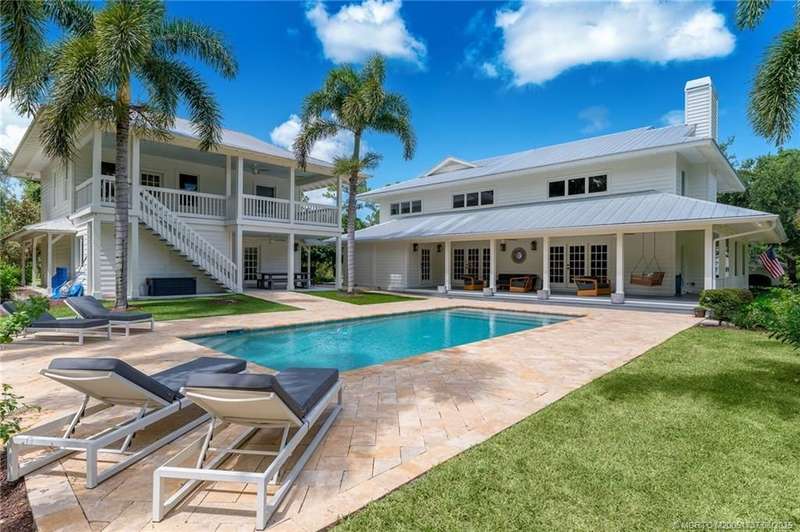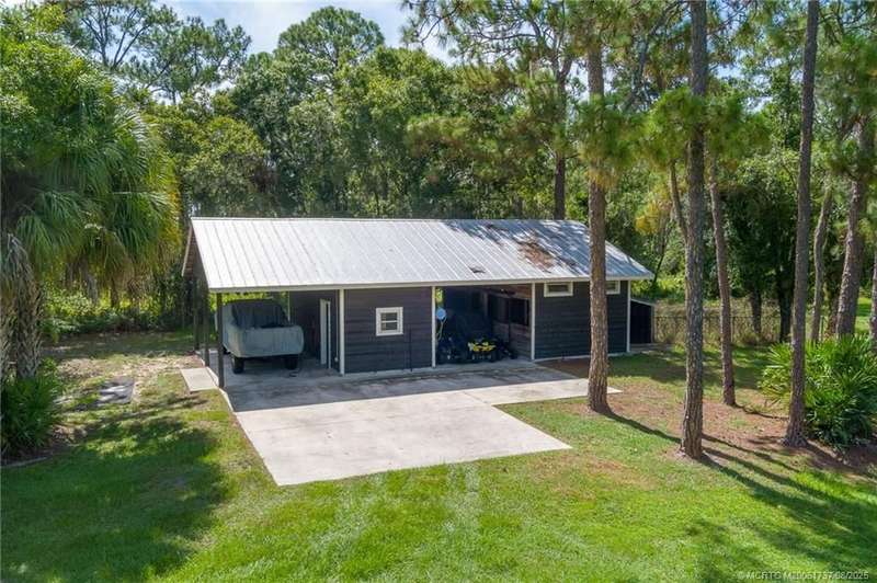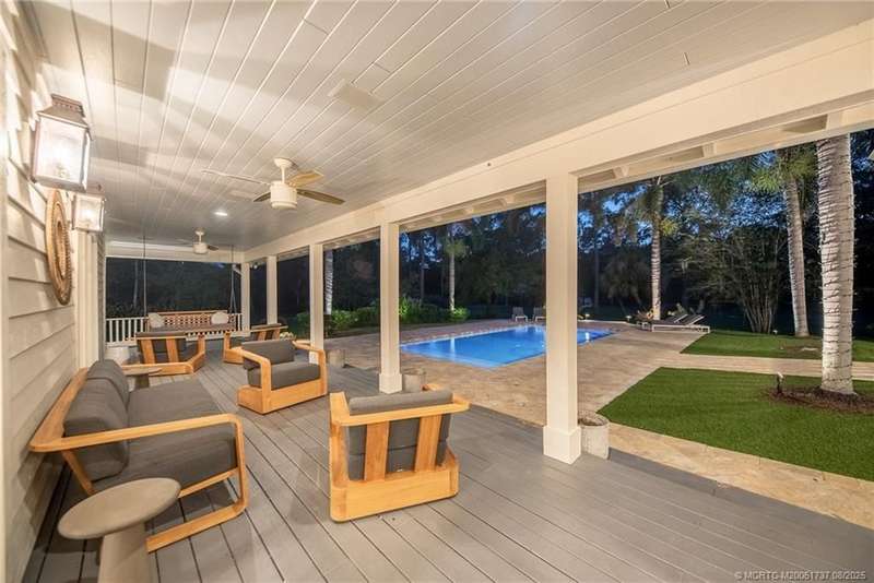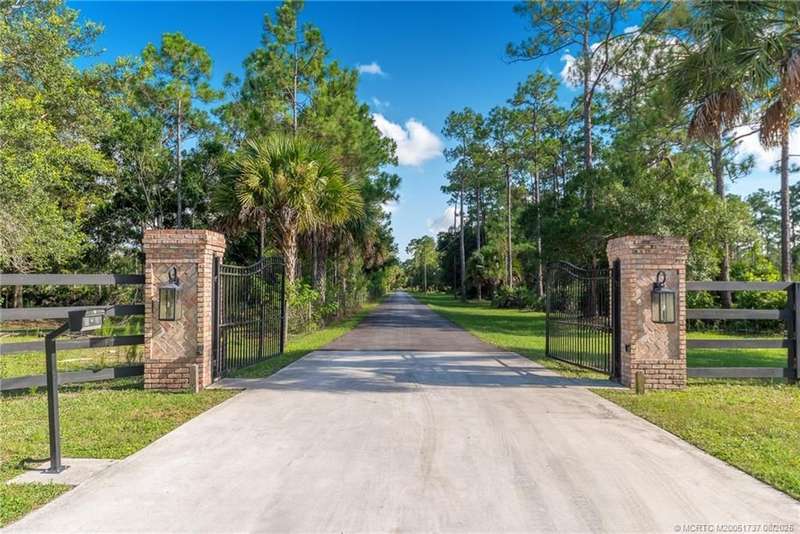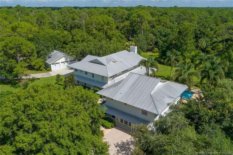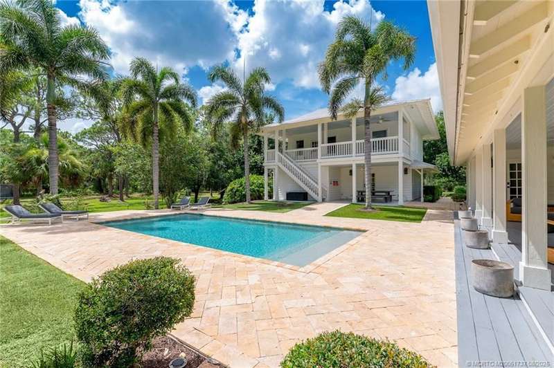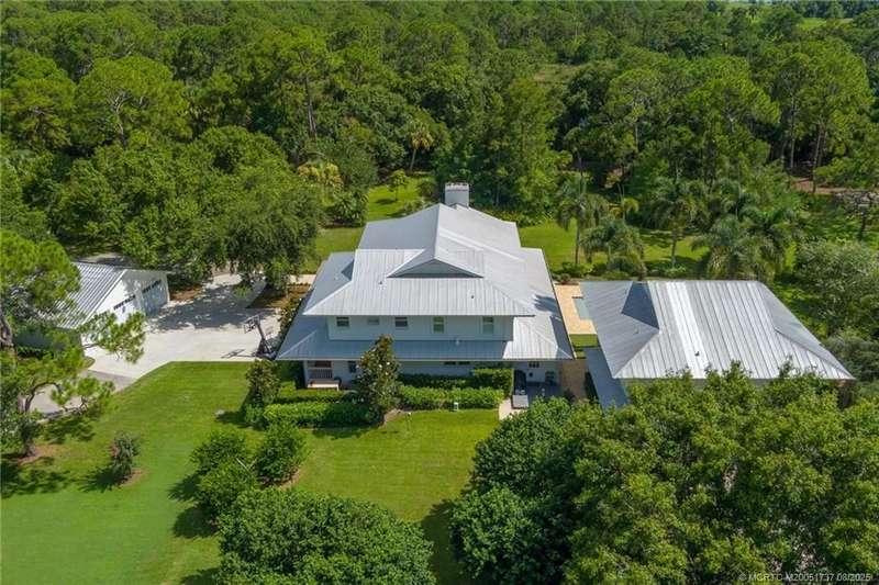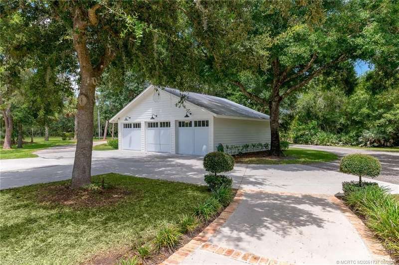 Exper??en??e the ru??t???? ??h?rm ?nd modern comforts at thi?? e??quisite Palm Beach meets Palm City estate. A mere 25 minutes from Historic Stuart Beach or Jupiter Island, this estate is a haven of amenities. It features a barn with two horse stalls, an air-conditioned storage/workshop, and a fishing pond, complemented by a stunning pool, fire pit, and a detached three-car garage with an accompanying new tree house with a zip line. A secure gate opens to an expansive driveway leading to the main residence and a separate path to the guest quarters. The main residence is a showcase of luxury with three bedrooms, three bathrooms, lofty ceilings, premium appliances, gas cooking, and an inviting wrap-around porch. The guest house offers a private bedroom, bathroom, kitchen, and living space on the upper level, plus an extra bedroom and bathroom on the lower level. Nestled on ten acres, this extraordinary estate promises a private resort-like retreat that stands out as truly unique.