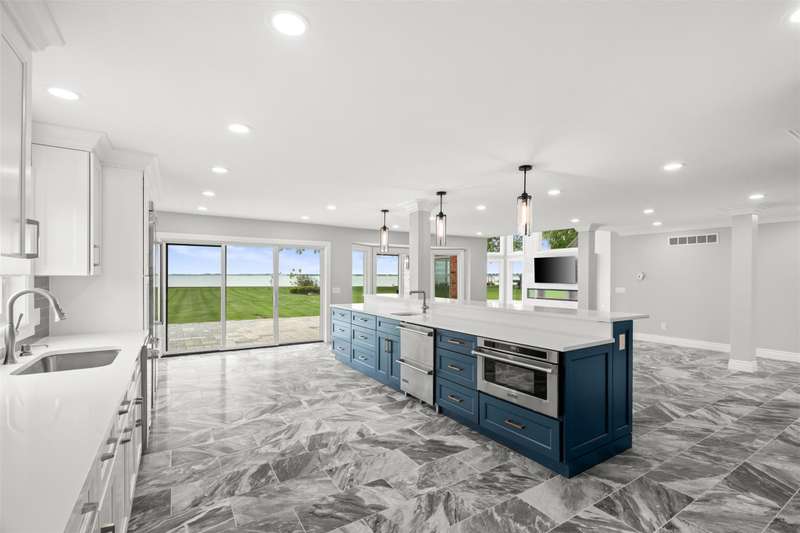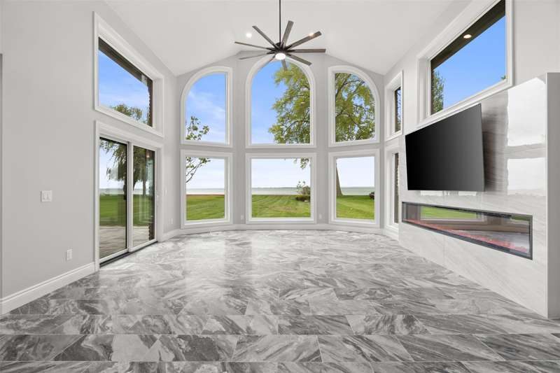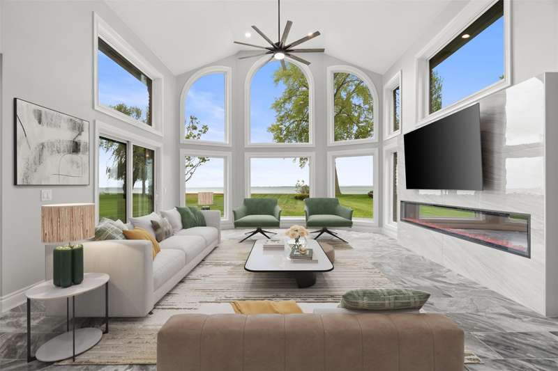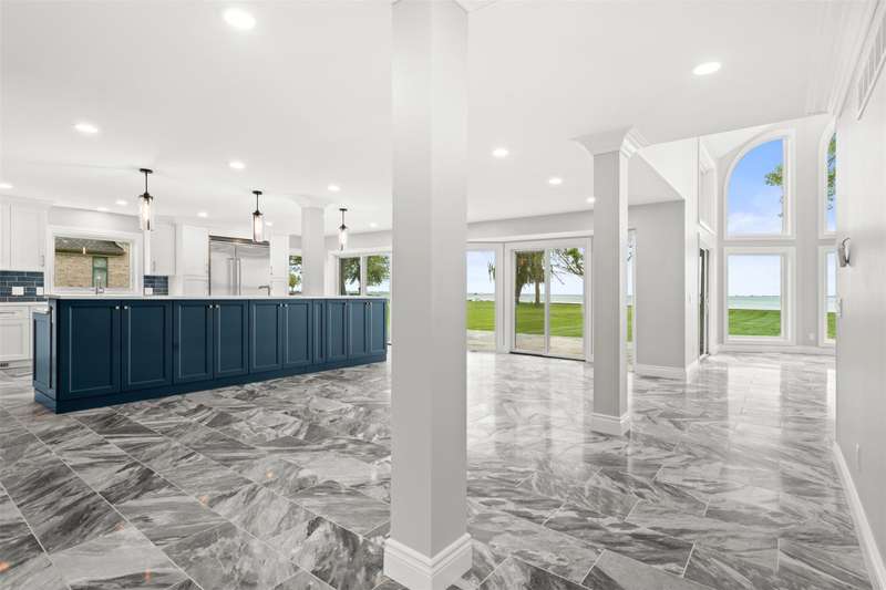 Waterfront Luxury on Anchor BayThis stunning Lakefront and canal-front home offers direct backyard access to the water, complete with a private dock and boat hoist—perfect for lake living. A beautifully updated brick exterior welcomes you with brand-new windows, front and garage doors, modern lighting, and an extended driveway. Step inside to find marble flooring throughout the first level, a spacious open layout, and a first-floor primary en suite featuring a walk-in shower and custom California closet. The living room featuring floor-to-ceiling windows overlooking Anchor Bay and an electric fireplace, while the dining area includes an additional fireplace and built-in TV. The chef’s kitchen is equipped with top-of-the-line Viking appliances, including a range, counter depth refrigerator, dishwasher, microwave, warming oven, and a large island with a prep sink. A stylish half bath and first-floor laundry add convenience. Upstairs, you’ll find two generously sized bedrooms with brand-new plush carpeting, and a second luxurious primary en suite with a private balcony, California closet, double vanity, two-person shower, soaking tub, and separate water closet. Additional highlights include a whole-house generator, solid core doors throughout, a three-car attached garage with epoxy flooring, access to a large bonus room above, and a deep, clean concrete crawl space—ideal for storage and peace of mind.