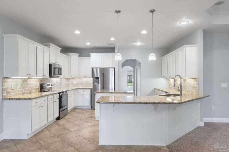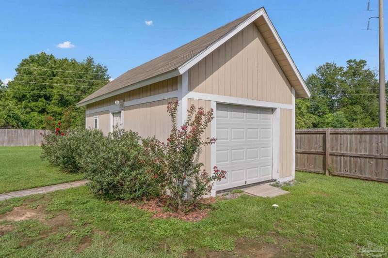 Location! Location! Location! Immaculate all-brick home in the heart of Pace at Spencer Ridge! This spacious 5BR/3BA split floor plan features a gourmet kitchen with granite countertops, stainless steel appliances, island, and walk-in pantry. The great room boasts tray ceilings, crown moulding, wood burning fireplace, and surround sound. Large primary suite includes dual vanities, soaking tub, and separate shower. Enjoy the extended great room, covered front and back porches, fenced yard, and a 24x14 powered workshop/shed. Located on a quiet �½-acre lot near top-rated schools, shopping, and NAS Whiting Field.