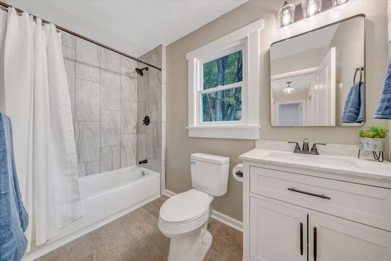Completely renovated while keeping all its original charm. This 3 bedroom, 2 and a half bath, multilevel gem has 1828 square feet of beautifully designed space. Solid hickory hardwood floors throughout living spaces with commercial grade luxury vinyl plank and tiles in the kitchen, baths, and family room. The primary bedroom suite indulges with a marble shower, walk-in closet, and dual vanity for the owners. The kitchen boast a granite counter with chef waterfall sink, all new stainless appliance, and adjacent butcher block prep area. Table with 4 chairs conveys in the eat-in area. The family/recreation room has over 400 square feet of open space to configure however you want. Parking for four vehicles in the driveway and a great side grass yard along this quiet side street.