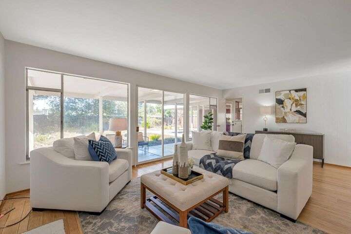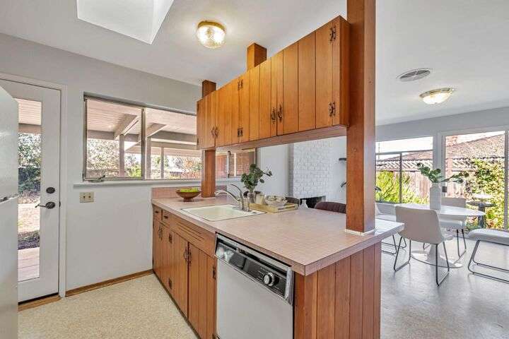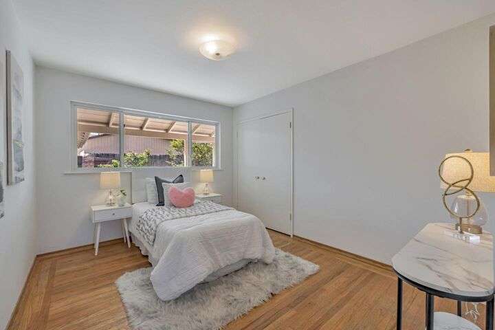 Prime location! Walk to top Los Altos schools Almond and Los Altos High and quick bike to Egan. Walk to Whole Foods, Safeway, coffee, banks, pharmacies, an evening stroll to the restaurants at the San Antonio Center, and under a mile to charming downtown Los Altos with all of its events! Move right in with new interior paint, nice hardwood floors, double pane windows, and then update as you go. Light, bright, and sunny with lots of windows and an excellent open floorplan; open kitchen-family room, wonderful large living room, and a full indoor laundry room. Large lot with a fun courtyard, covered rear patio for outdoor dining and a big private backyard ready for your ideas! Do not miss this one!