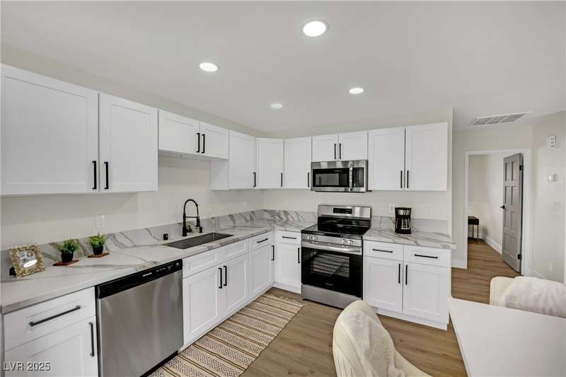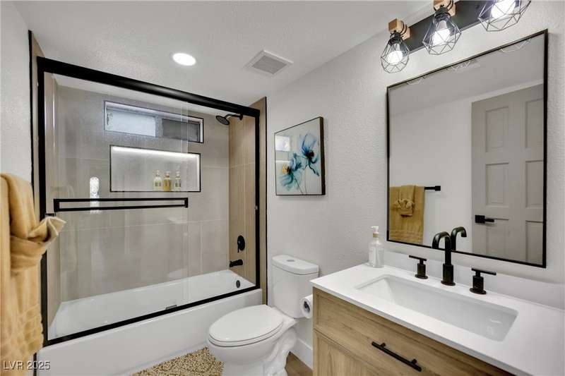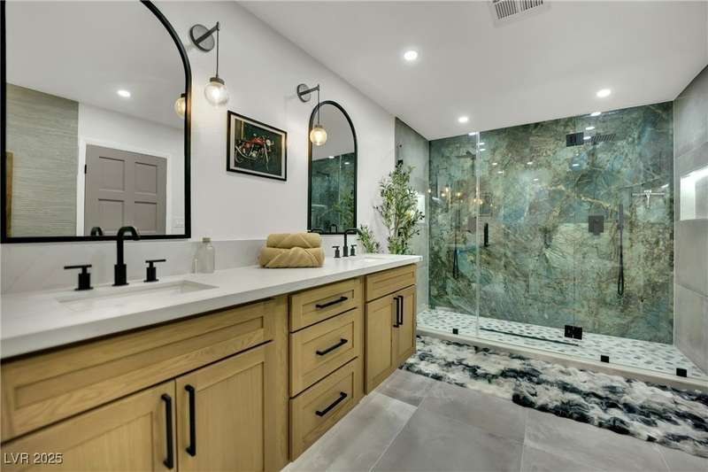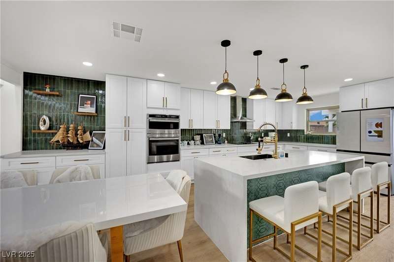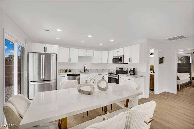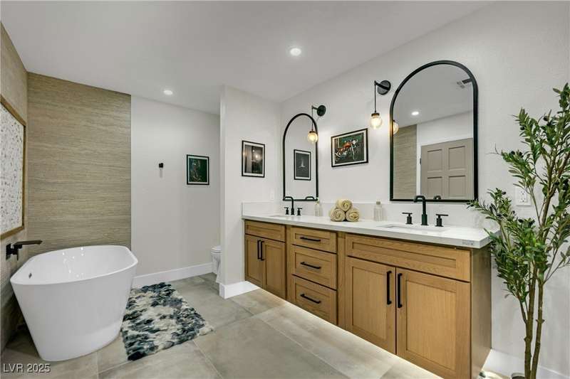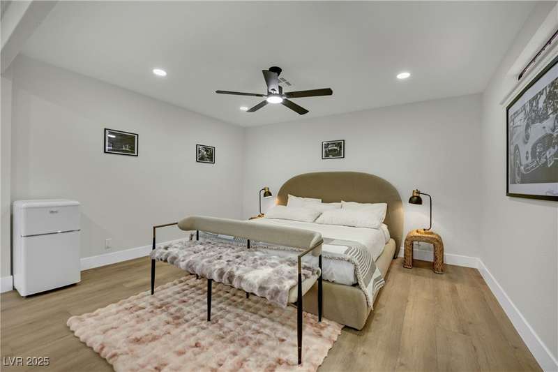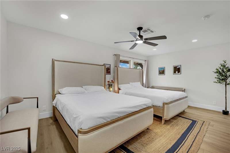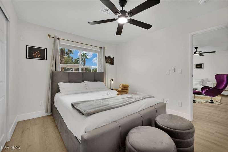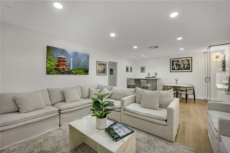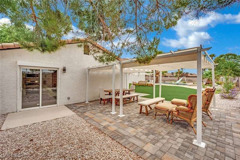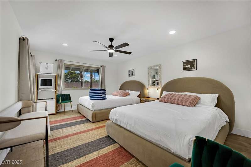 Welcome to your private Las Vegas retreat! This stunning fully furnished, turnkey home sits on over half an acre in a quiet cul-de-sac and offers luxury, space, and flexibility. The main home has been fully rehabbed with modern finishes throughout and features an open layout perfect for entertaining. Step outside to your sparkling pool, backyard golf area, and covered patio designed for year-round enjoyment. With no HOA, an oversized driveway, and plenty of RV parking, you’ll have room for all your toys. The property also includes a detached two-bedroom guest house with a full kitchen—ideal for family, guests, or rental income. Nestled in a peaceful neighborhood yet minutes from shopping, dining, and the Strip, this move-in-ready home truly has it all. Come experience the best of Las Vegas living today!