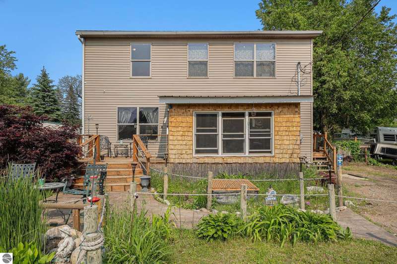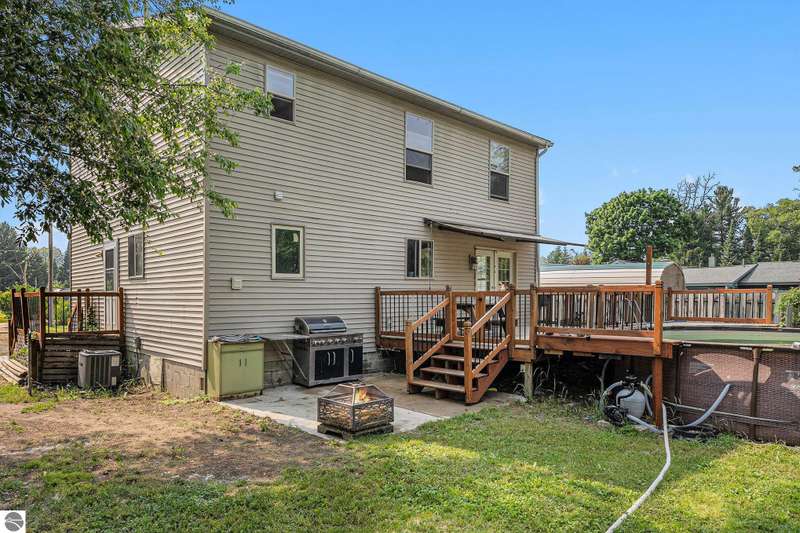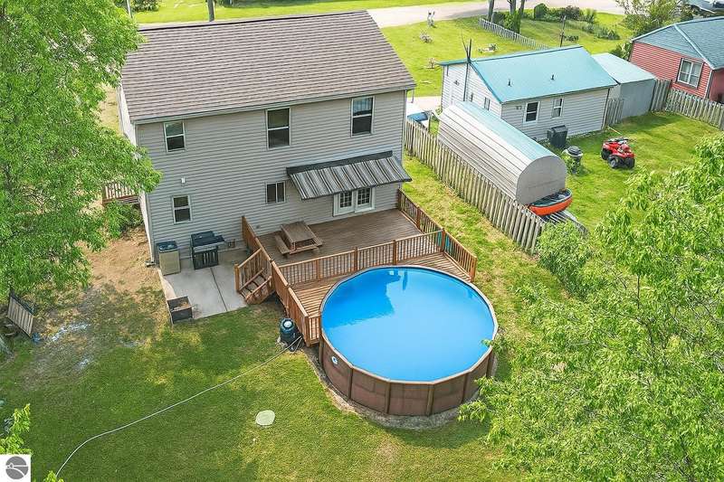 Spacious 4-5 Bedroom Home with Pool & Deck! Step into your own slice of paradise with this spacious 2-story home offering approx. 1,800 square feet of living space, perfect for full-time living or a weekend escape! With 4 bedrooms and a main floor den currently being used as a 5th bedroom, there's room for everyone. The main floor laundry adds convenience, and the home has been thoughtfully updated. A large 5-ft crawl space provides plenty of storage. Outside is where this home really shines! Picture yourself relaxing on the cozy enclosed front porch, unwinding next to your own serene koi pond, or splashing in the sparkling above-ground pool alongside a newer deck. This backyard is built for year-round enjoyment and gives you that "forever vacation" feeling. Located in a recreational hotspot -- enjoy boating and fishing on nearby lakes or hit the endless ORV trails just minutes away. Whether you're looking for a permanent residence or a seasonal escape, this home offers it all.