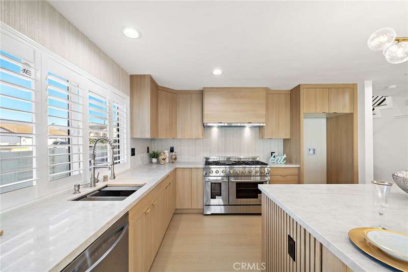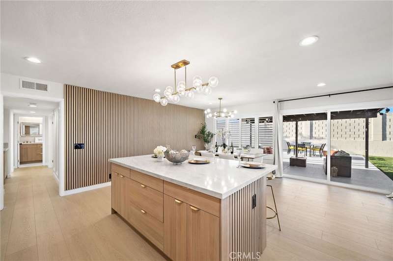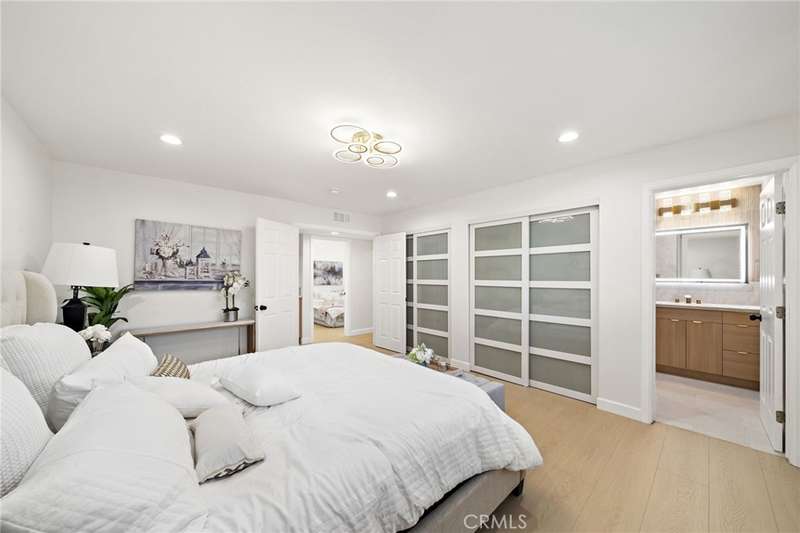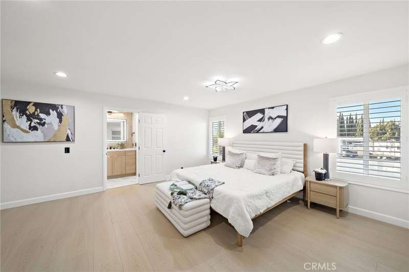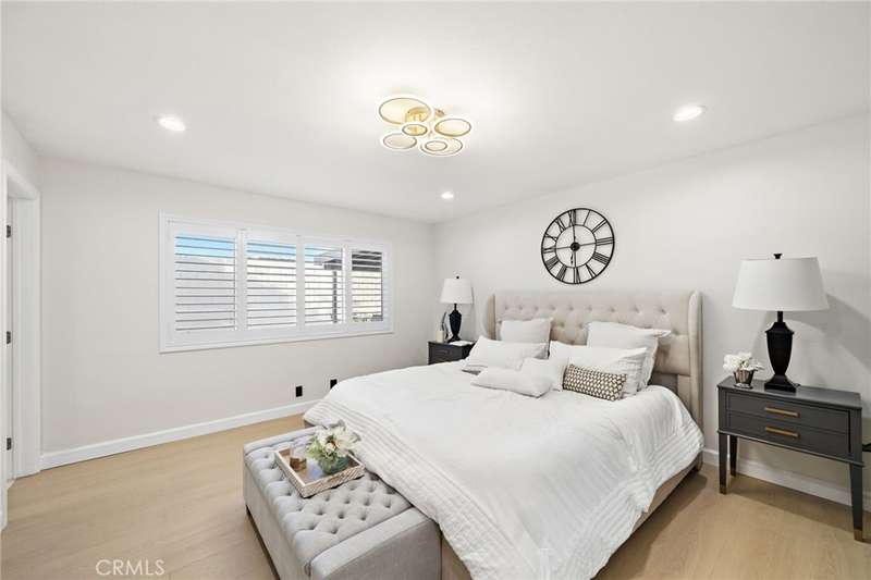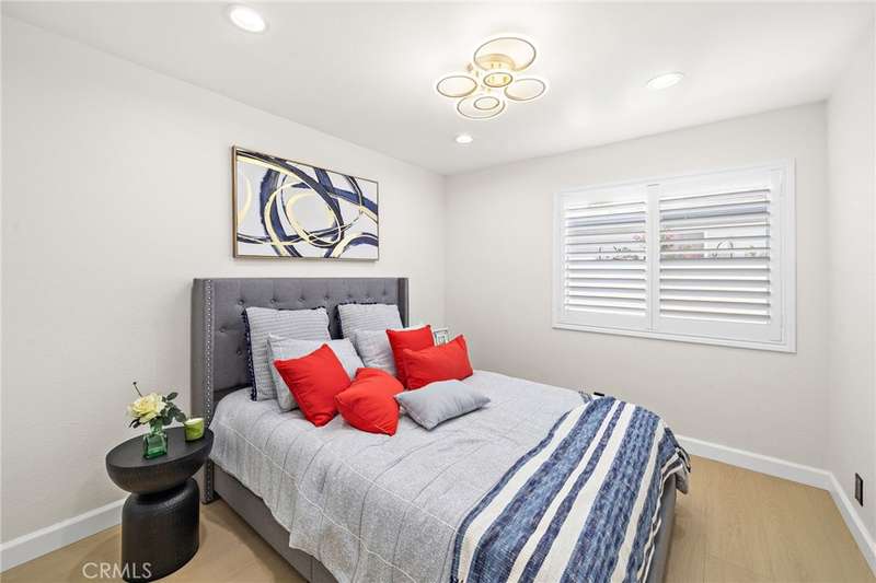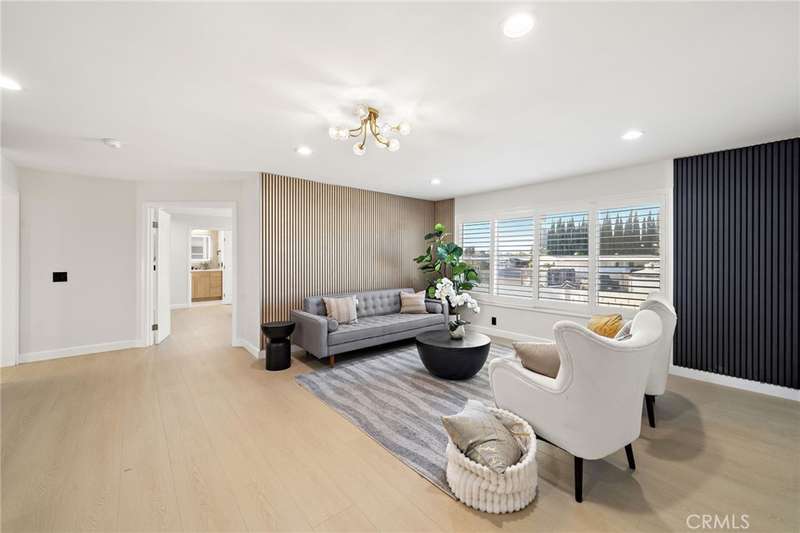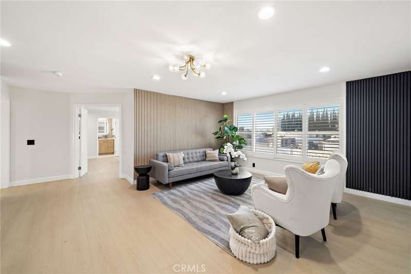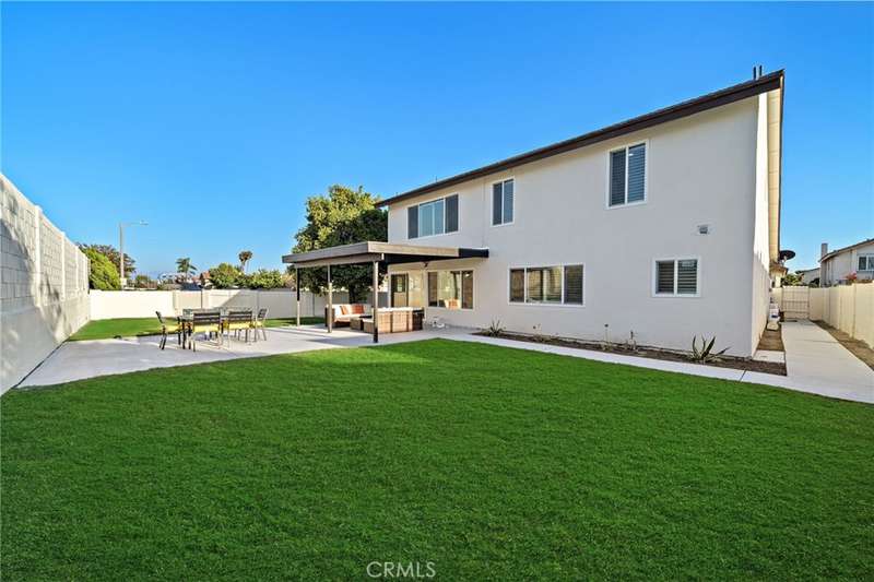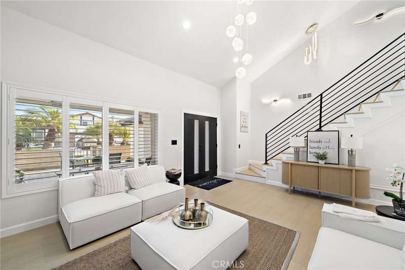 Every square inch of this stunning home has been completely reimagined with impeccable attention to detail and the finest modern luxury finishes, with the remodel just completed in July 2025! This show-stopping 4 bedroom home (including 2 primary suites--1 downstairs), plus loft/family room, and 3 beautifully remodeled baths feels like a brand-new model home and is ideally situated on an extra-large 7,590 SF corner lot. The open-concept design boasts soaring ceilings, dual pane windows, plantation shutters, recessed lighting, exquisite chandeliers, decorative geometric wall moldings, chic floating shelving, raised panel doors, and waterproof luxury wood-vinyl flooring. The chef's dream kitchen is a masterpiece with Corian counters, a large island with seating, Euro-style self-closing cabinetry, and professional-grade stainless appliances, including a 48" 6-burner NXR double oven gas range. Gorgeous curb appeal features manicured tropical landscaping and a tiled courtyard that leads to double entry doors with frosted glass. Inside, the breathtaking living room showcases an artful electric fireplace and a dramatic staircase with sleek steel railing, seamlessly flowing to the gourmet kitchen and banquet-size dining room with walls of glass overlooking the expansive backyard oasis with covered patio, park-like lawn, and high block wall fencing for privacy--perfect for entertaining or future pool/ADU. All 3 bathrooms feature textured tile surrounds, LED light mirrors, Corian vanities, clear glass barn-door enclosures, and smart heated toilets. Spacious bedrooms include frosted glass closet doors; the upstairs primary has a retreat and walk-in closet, while the downstairs primary offers dual closets. Additional highlights include direct access to the finished garage and multiple opportunities for multigenerational living or expansion on the oversized lot. Ideally located near Little Saigon Center, Bella Terra, Huntington Beach, Fountain Valley, parks, schools, and freeways, with just a short drive to the beach, this home offers the perfect blend of luxury, space, and coastal convenience.