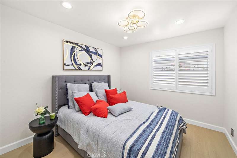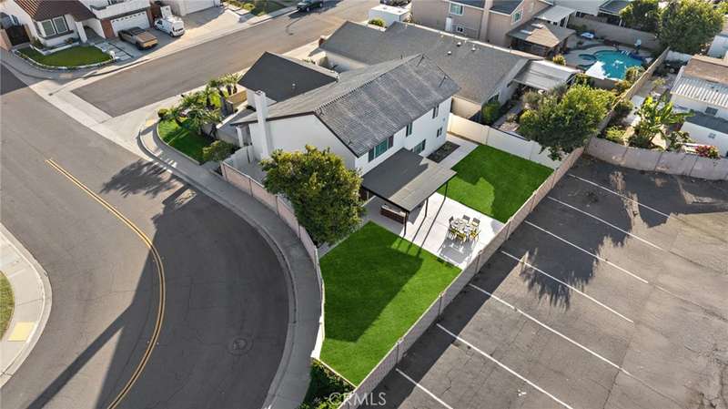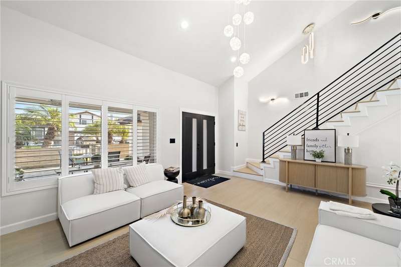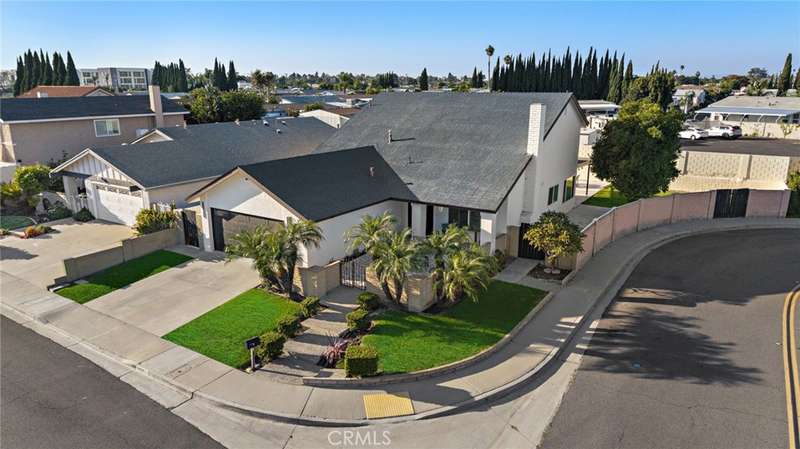 Every square inch of this stunning home has been completely reimagined with impeccable attention to detail and the finest modern luxury finishes, with the remodel just completed in July 2025! This show-stopping 4 bedroom home (including 2 primary suites--1 downstairs), plus loft/family room, and 3 beautifully remodeled baths feels like a brand-new model home and is ideally situated on an extra-large 11,232 SF corner lot. The open-concept design boasts soaring ceilings, dual pane windows, plantation shutters, recessed lighting, exquisite chandeliers, decorative geometric wall moldings, chic floating shelving, raised panel doors, and waterproof luxury wood-vinyl flooring. The chef's dream kitchen is a masterpiece with Corian counters, a large island with seating, Euro-style self-closing cabinetry, and professional-grade stainless appliances, including a 48" 6-burner NXR double oven gas range. Gorgeous curb appeal features manicured tropical landscaping and a tiled courtyard that leads to double entry doors with frosted glass. Inside, the breathtaking living room showcases an artful electric fireplace and a dramatic staircase with sleek steel railing, seamlessly flowing to the gourmet kitchen and banquet-size dining room with walls of glass overlooking the expansive backyard oasis with covered patio, park-like lawn, and high block wall fencing for privacy--perfect for entertaining or future pool/ADU. All 3 bathrooms feature textured tile surrounds, LED light mirrors, Corian vanities, clear glass barn-door enclosures, and smart heated toilets. Spacious bedrooms include frosted glass closet doors; the upstairs primary has a retreat and walk-in closet, while the downstairs primary offers dual closets. Additional highlights include direct access to the finished garage and multiple opportunities for multigenerational living or expansion on the oversized lot. Ideally located near Little Saigon Center, Bella Terra, Huntington Beach, Fountain Valley, parks, schools, and freeways, with just a short drive to the beach, this home offers the perfect blend of luxury, space, and coastal convenience.