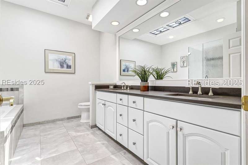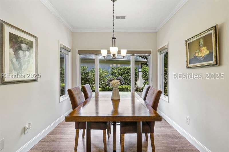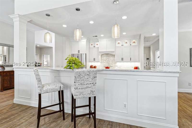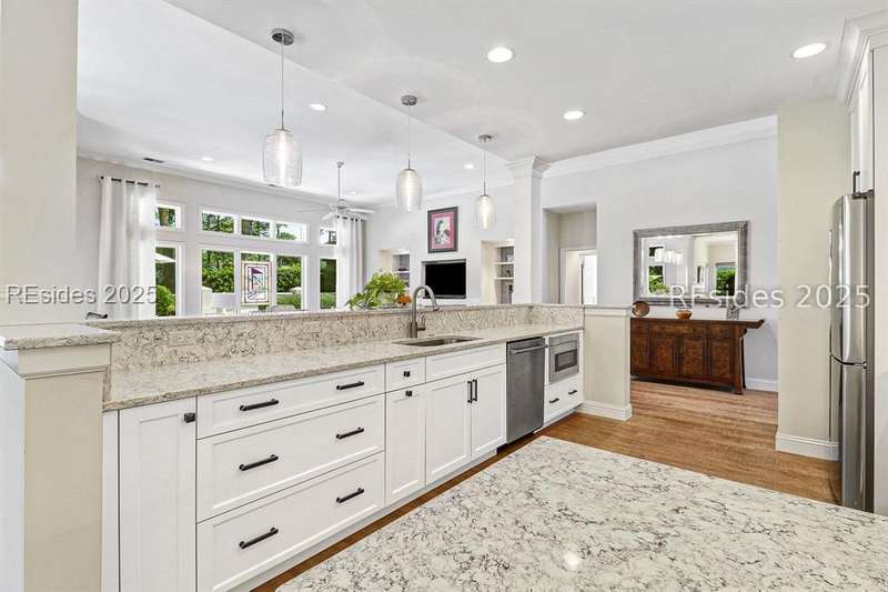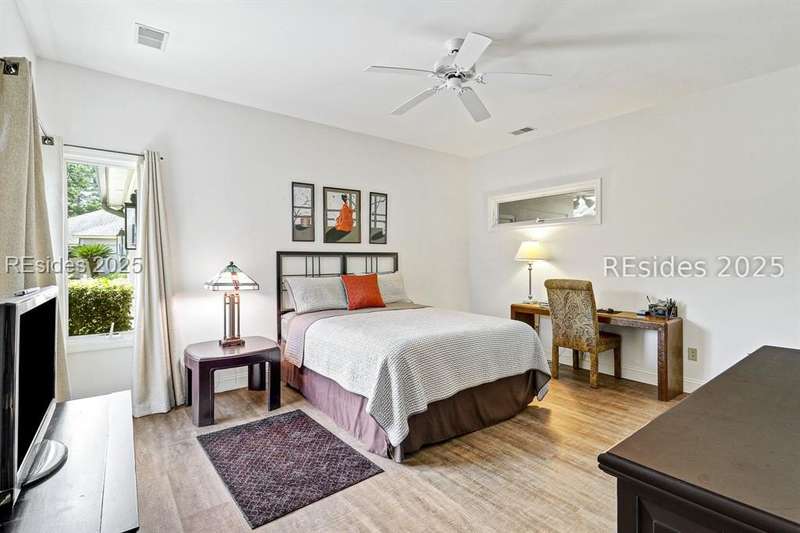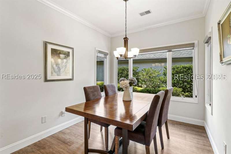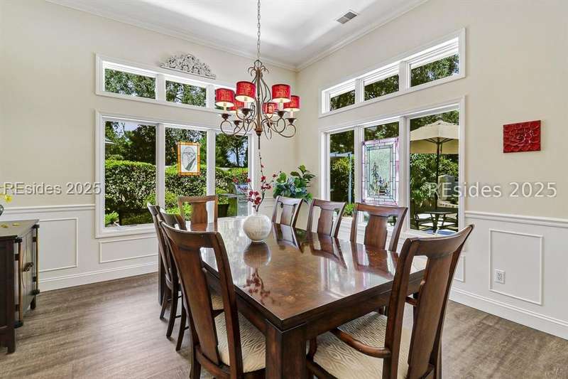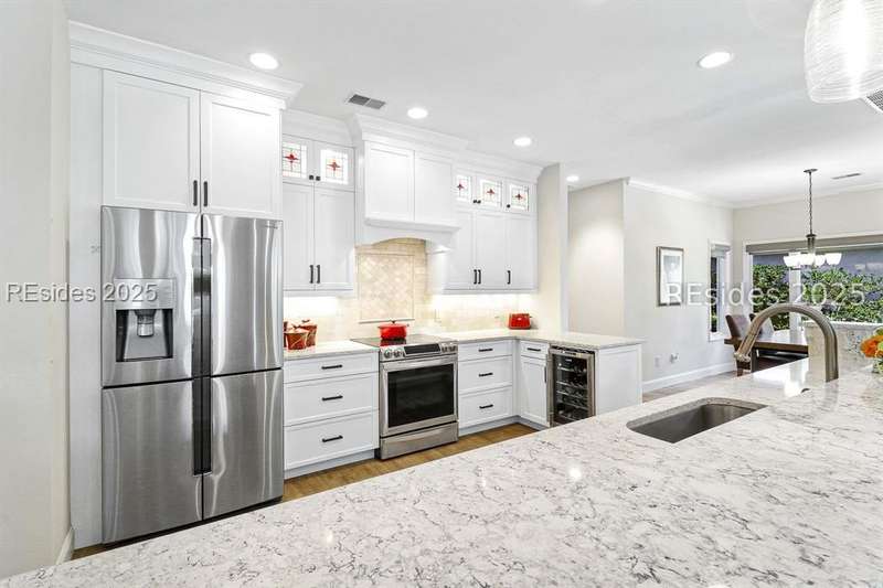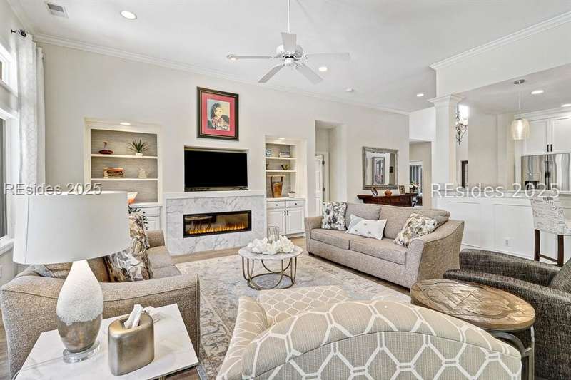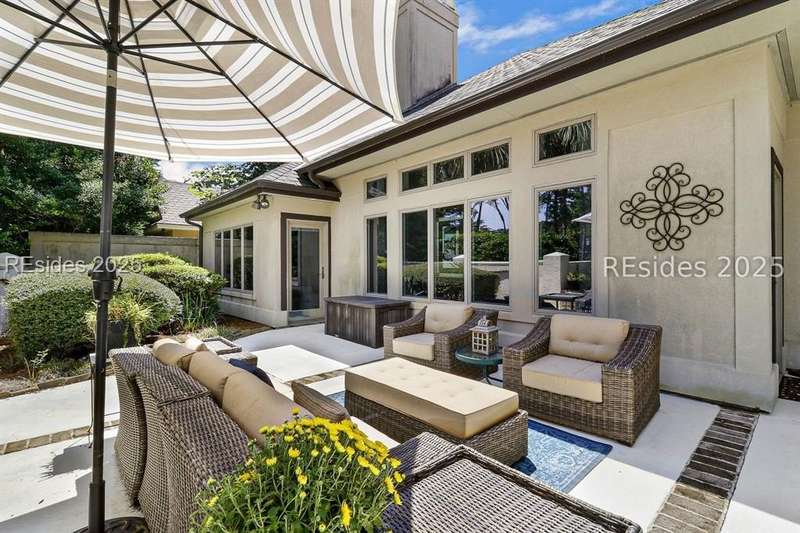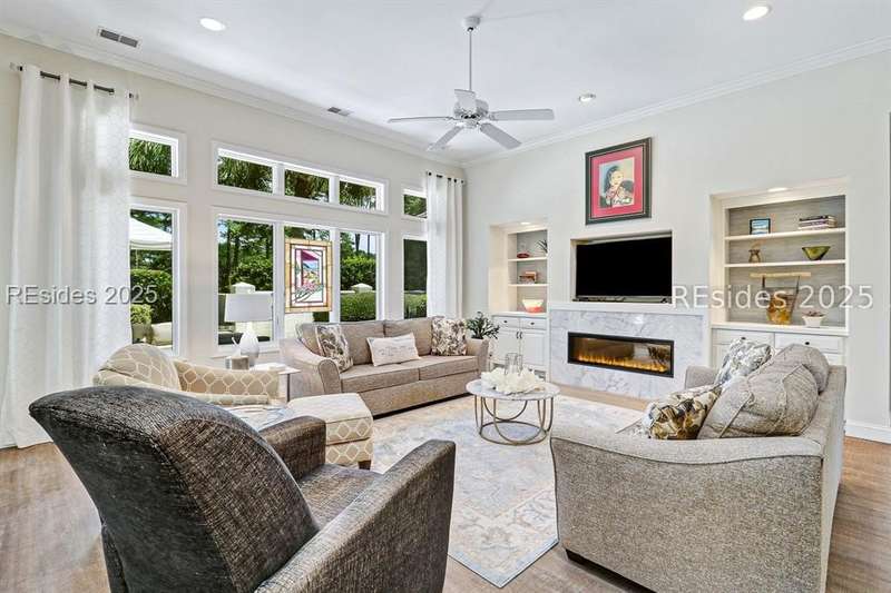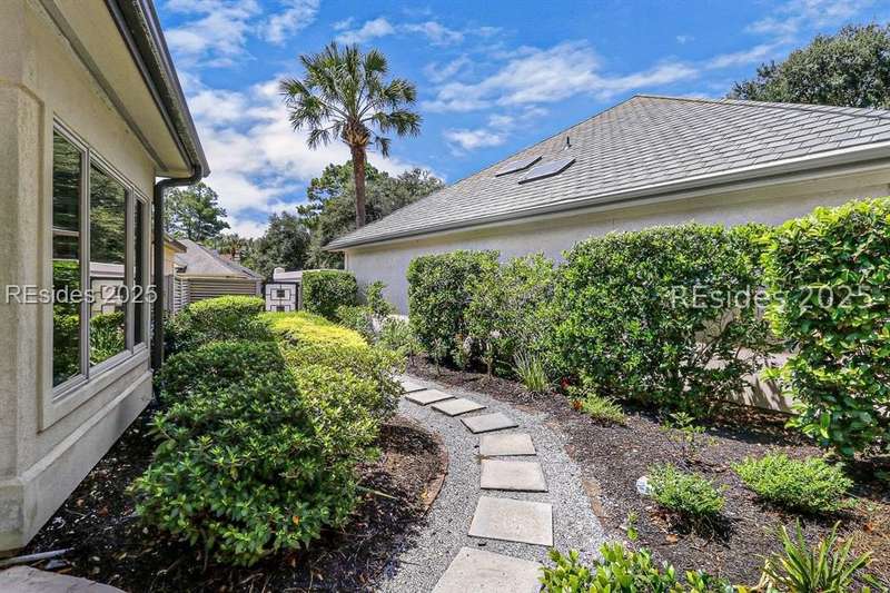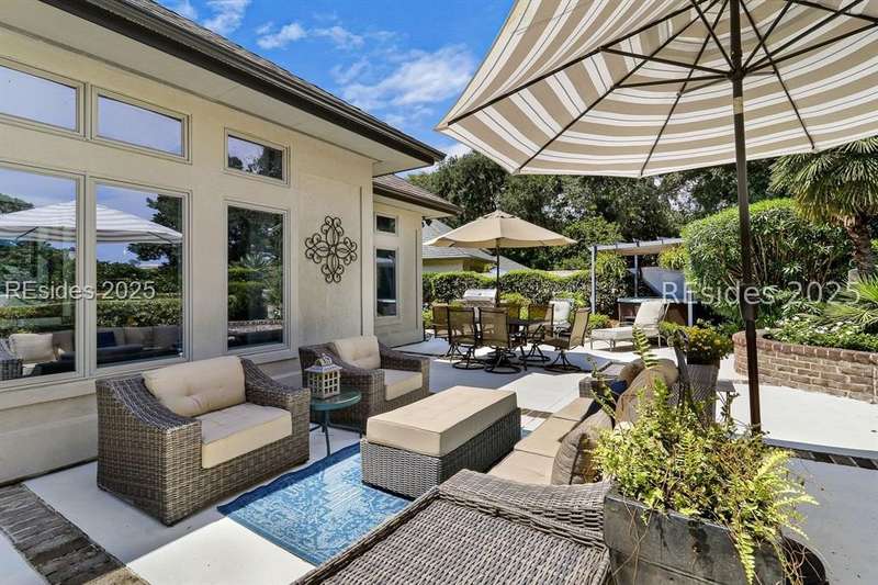 Excellent value on fully remodeled lifestyle residence with private outdoor Oasis and primo locale close to all popular HHP has to offer! Interior features include 9-15 smooth ceilings, LVP flooring, quartz & granite counters, custom/detailed millwork (crown molding, chair rail, etc.) & built-ins, electric fireplace, excellent natural light w/walls of windows + transom windows, artisan crafted stained glass accents, designer fixtures/hardware/lighting/window treatments, recessed lighting, ceiling fans, skylights, etc. Exterior offers private, wrap around/gated, outdoor Oasis with pristine hardscaping (Savannah brick planters & accents) & landscaping, specimen trees, mature plantings, spa with covered arbor, privacy wall, etc. with preferred north/east exposure for shaded late afternoons & evenings relaxing, grilling & entertaining Very livable floor plan offers Chefs kitchen (max cabinet/counter space, breakfast bar, Samsung & Bosch appliances, pendant & inside/under cabinet lighting, decorative tile backsplash) open to great room, formal/casual dining, excellent BR separation w/private primary suite boasting well-appointed bath & walk-in closet + 2 ample ensuite guest BRs, laundry room & 2 car garage w/epoxy finish floor. All with attractive/durable hard coat stucco exterior and prime, high elevation locale just a short stroll to Skull Creek, waterfront leisure path, CCHH + short drive/bike ride to waterfront dining/entertainment & shopping!