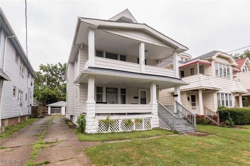 Situated near West Blvd in Cleveland is this well-maintained two-story duplex featuring 4 bedrooms, 2 baths, and a 2-car garage. Stepping into the downstairs unit you will find all the charm and character with dark wood pillars, hardwood floors, leaded glass windows, and built-in cabinets. In the upstairs unit you will find the same appeal, with top-notch kitchen appliances (Refrigerator and Range 2025). Both units feature newly updated kitchens with tile backsplash. The lower and upper units both have access to their own private balconies, with a communal porch situated in the back. Enjoy close proximity to major highways, Cleveland Metroparks, and local shopping / restaurants! With newer Water Heaters, Furnace, and a brand-new Washer and Dryer located in the basement; this duplex is the perfect place to call home, or ideal real estate investment opportunity for any investor!