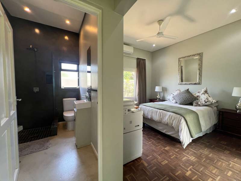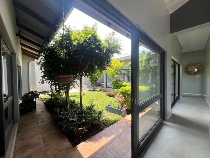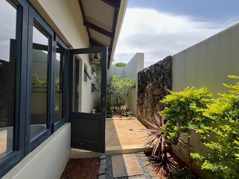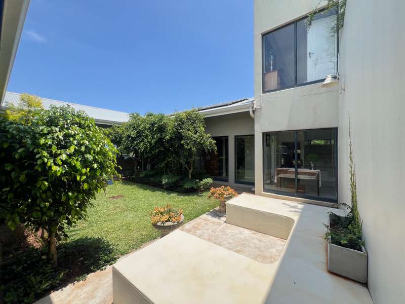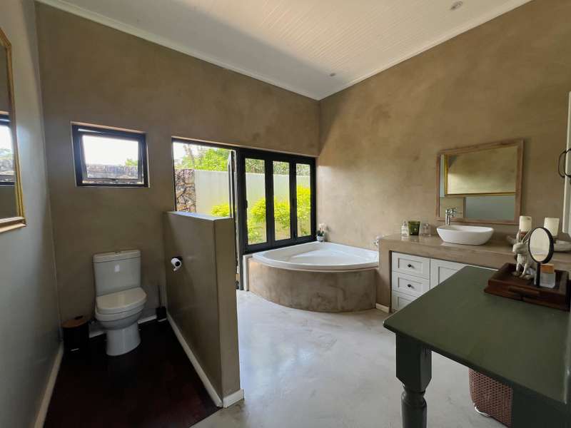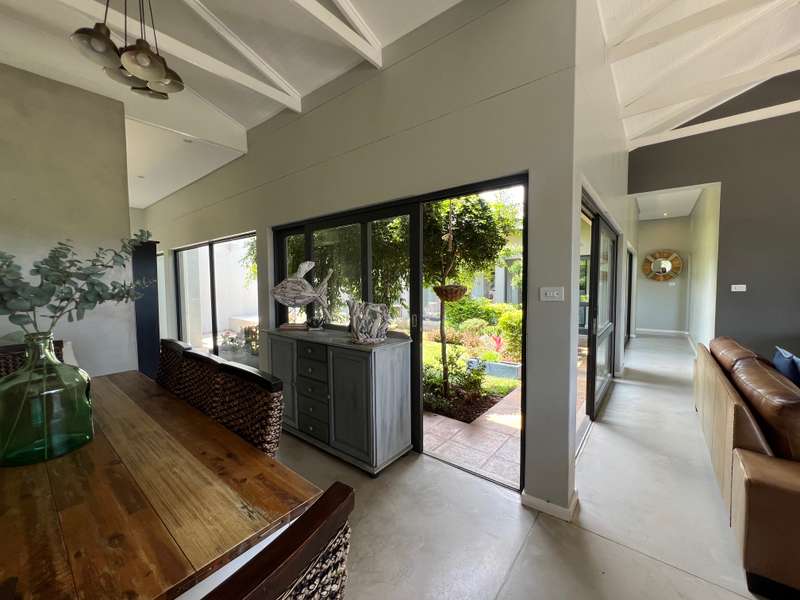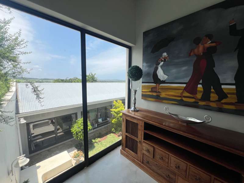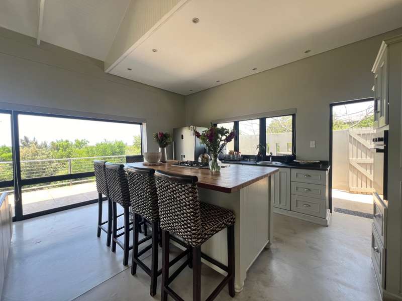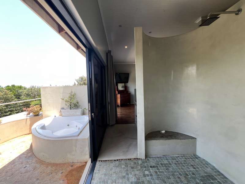 4 Bedroom home, nestled in one of the most coveted locations within this secure eco-estate, this home offers breathtaking views and unparalleled proximity to the estate’s serene natural dams. Designed with privacy in mind, the property is built around a lush central courtyard, seamlessly connecting the open-plan living spaces and four bedrooms. The kitchen, complete with a separate scullery, flows effortlessly into the living area and onto a spacious patio—perfect for enjoying uninterrupted views of the surrounding landscape. The main bedroom is a true retreat, featuring expansive forest views and an indulgent open-air bathtub and shower, bringing you closer to nature in complete luxury. This home is equipped with a full solar energy and battery backup system, ensuring sustainable and reliable living. Enjoy access to walking, running, and cycling trails right from your doorstep, all within the safety and serenity of this exceptional eco-estate.