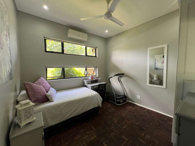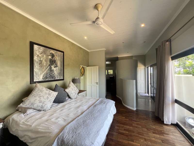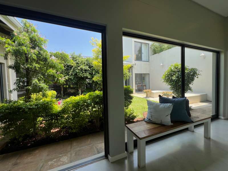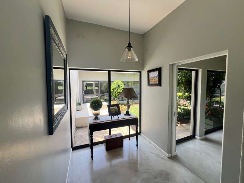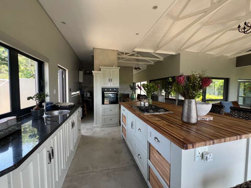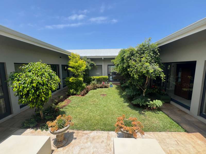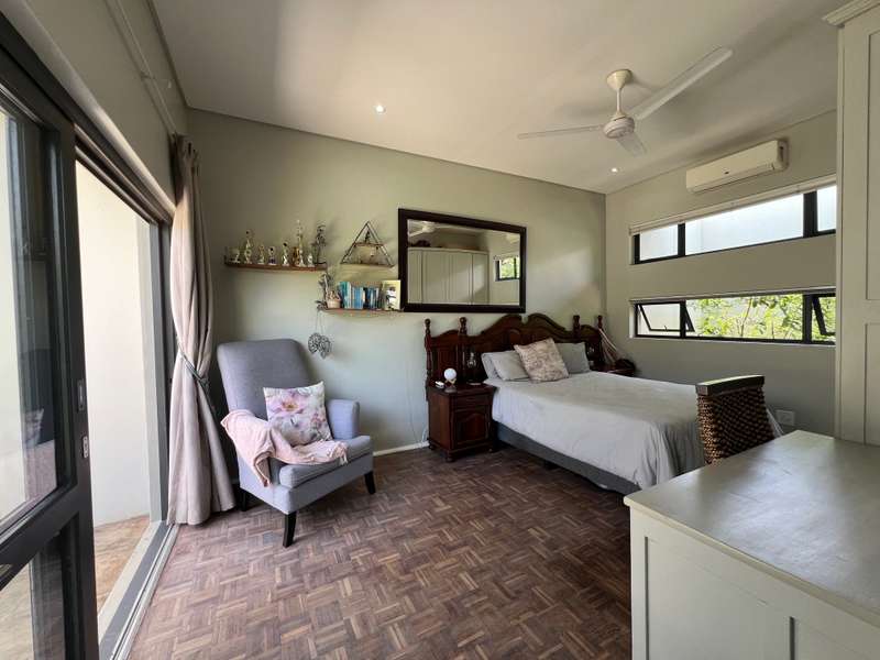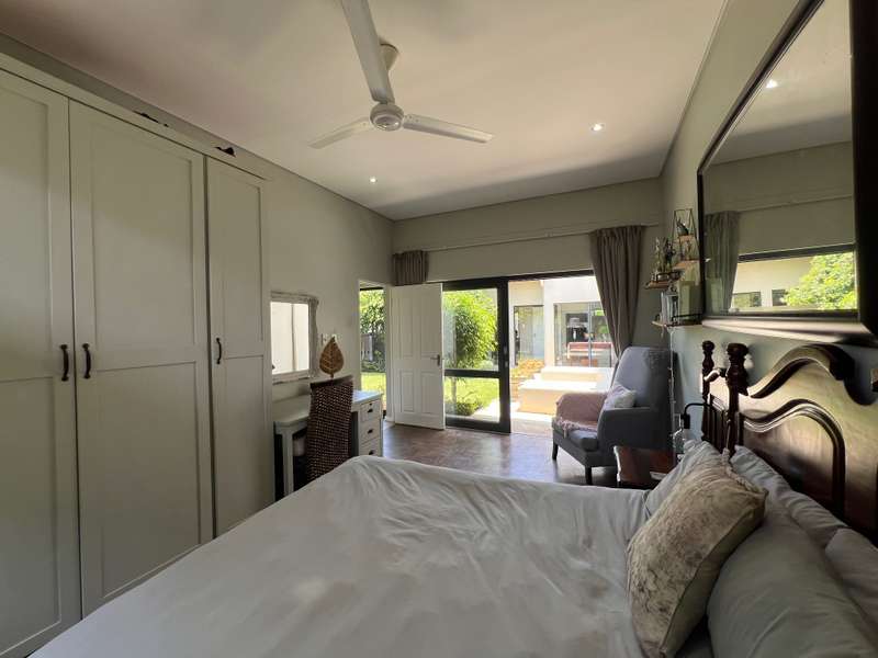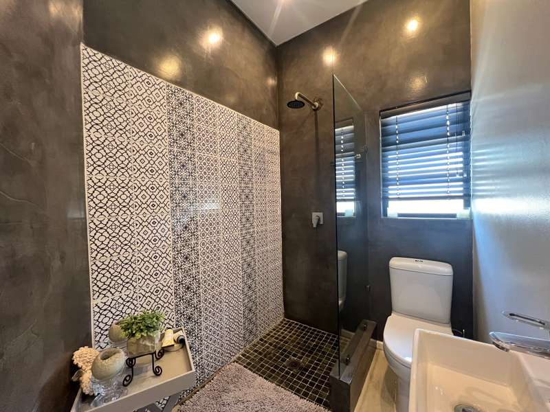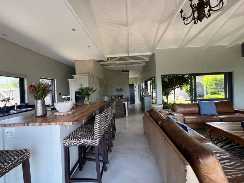 4 Bedroom home, nestled in one of the most coveted locations within this secure eco-estate, this home offers breathtaking views and unparalleled proximity to the estate’s serene natural dams. Designed with privacy in mind, the property is built around a lush central courtyard, seamlessly connecting the open-plan living spaces and four bedrooms. The kitchen, complete with a separate scullery, flows effortlessly into the living area and onto a spacious patio—perfect for enjoying uninterrupted views of the surrounding landscape. The main bedroom is a true retreat, featuring expansive forest views and an indulgent open-air bathtub and shower, bringing you closer to nature in complete luxury. This home is equipped with a full solar energy and battery backup system, ensuring sustainable and reliable living. Enjoy access to walking, running, and cycling trails right from your doorstep, all within the safety and serenity of this exceptional eco-estate.
