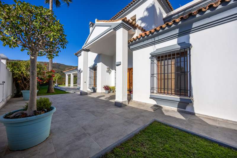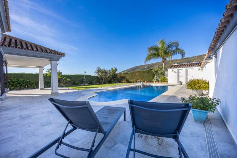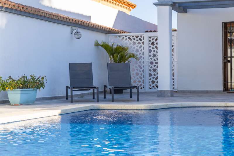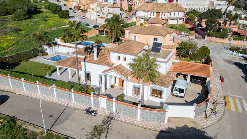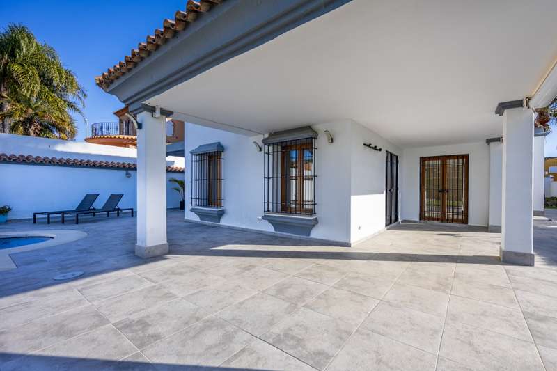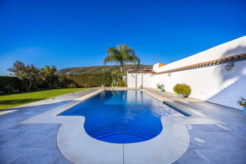Located in Santa Margarita, on the outskirts of La Línea de la Concepción, this villa offers an ideal space for comfortable living in a privileged setting. With a plot of 944 m² and a built area of 270 m², this property stands out for its well-thought-out design, high-quality finishes, and a wide range of features that guarantee comfort and style. Just a 4-minute drive from El Burgo beach. The villa, distributed over two floors, boasts three bedrooms—two on the ground floor and a suite on the first floor—and a total of four bathrooms (one of them by the pool), providing generous and functional living space. On the main floor, a stylish double-height entrance hall welcomes you, enhanced by an impressive chandelier and high ceilings. On one side, there are two bedrooms with built-in wardrobes and two bathrooms, one of them en-suite, offering privacy and comfort. On the other side, you’ll find a spacious living room with a fireplace, a separate dining room that could be converted into a playroom or study, connected to a fully equipped kitchen with an adjoining laundry area. On the upper floor, there is a third bedroom with an adjacent bathroom, ideal as a master or guest room. The exterior of the property is equally impressive, featuring a well-maintained and recently renovated private garden surrounding a 46 m² swimming pool. The covered porch area invites you to enjoy the Mediterranean climate year-round, while a practical laundry area, storage room, and an additional bathroom by the pool add to the outdoor functionality. The property also offers a parking area, including covered space for two vehicles and uncovered space for two more—perfect for families with multiple transportation needs. Additionally, the villa incorporates details that enhance quality of life, such as solar panels, a 6-cubic-meter water well, an alarm system, and partial views of the sea, Gibraltar, Africa on clear days, as well as the mountains and surrounding area. Its strategic location in an elevated area ensures proximity to the beach, Gibraltar, the motorway, the center of La Línea, as well as shops, restaurants, and the port. With these features, this villa represents a unique opportunity for those seeking a home in a prime location with all necessary amenities. It offers easy access to the motorway. Contact us to schedule a viewing and discover your new home!