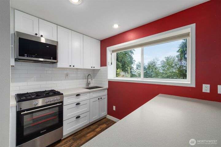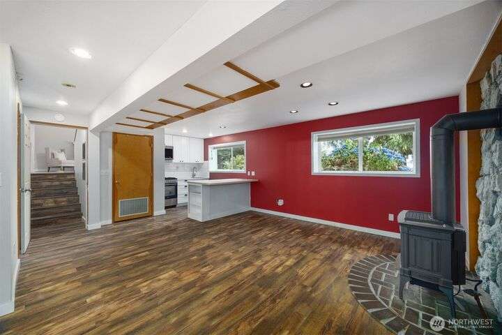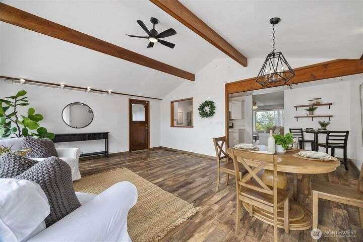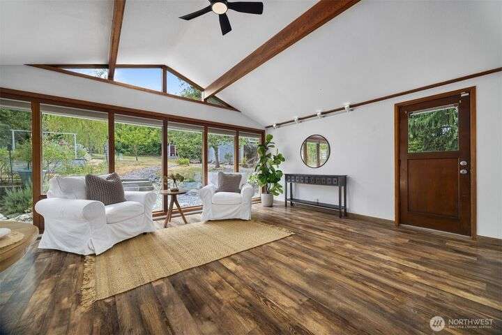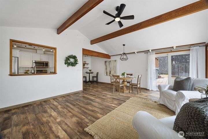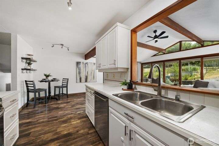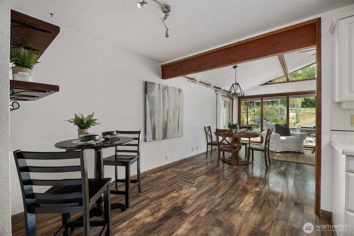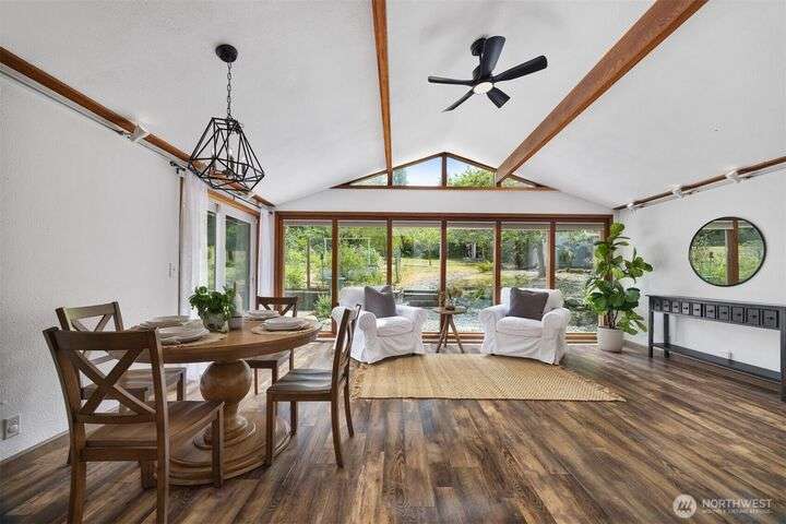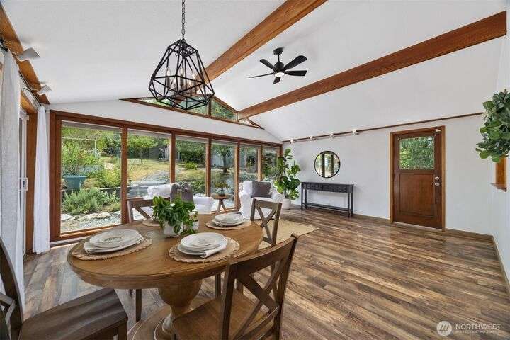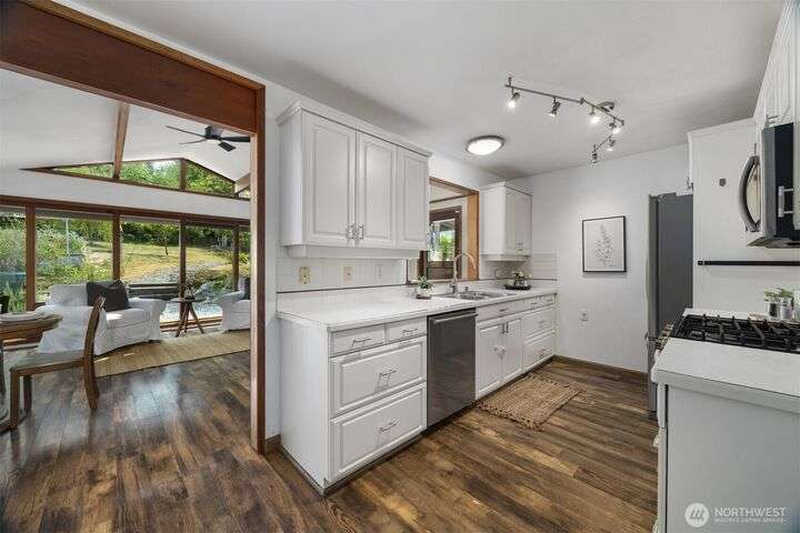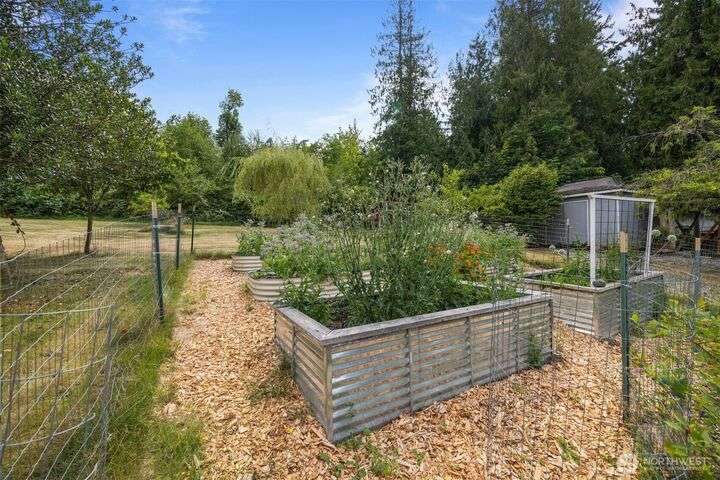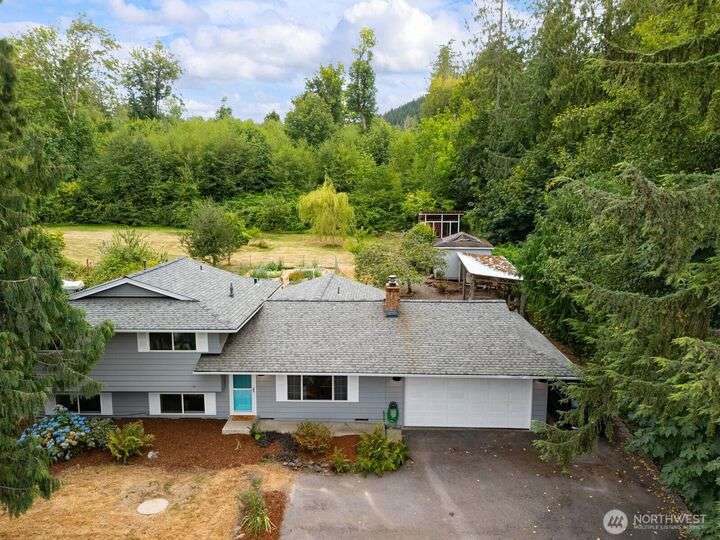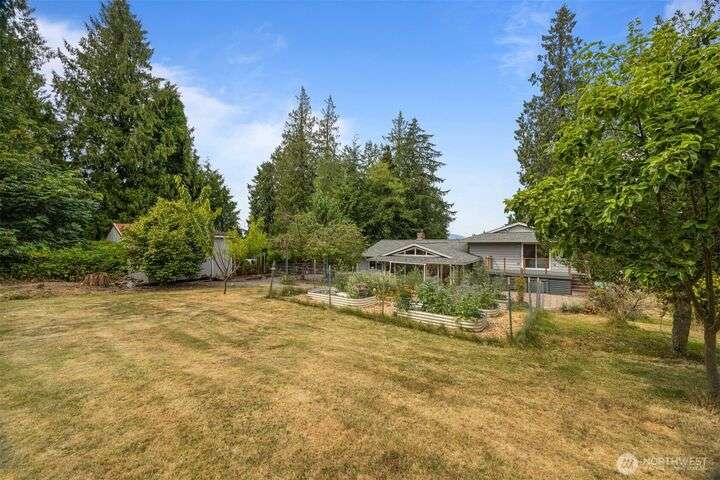 Minutes from downtown, this .45-acre property blends modern updates with peaceful charm. Floor-to-ceiling windows fill the open living/dining area with light, while the kitchen features SS appliances and space to gather. A private lower-level suite with separate entry, bath, kitchenette, & laundry is perfect for guests, multi-gen living or rental income. Upstairs offers 3 bedrooms with a deck off the master suite and a remodeled bath with dual vanity. Gardening enthusiasts will love the raised beds with drip irrigation, fruit trees, berry bushes, and a custom-built chicken coop. There’s ample space for entertaining on the lawn and patio, an upgraded 2-car garage plus powered shed and covered storage. Scenic views and flexible living await!