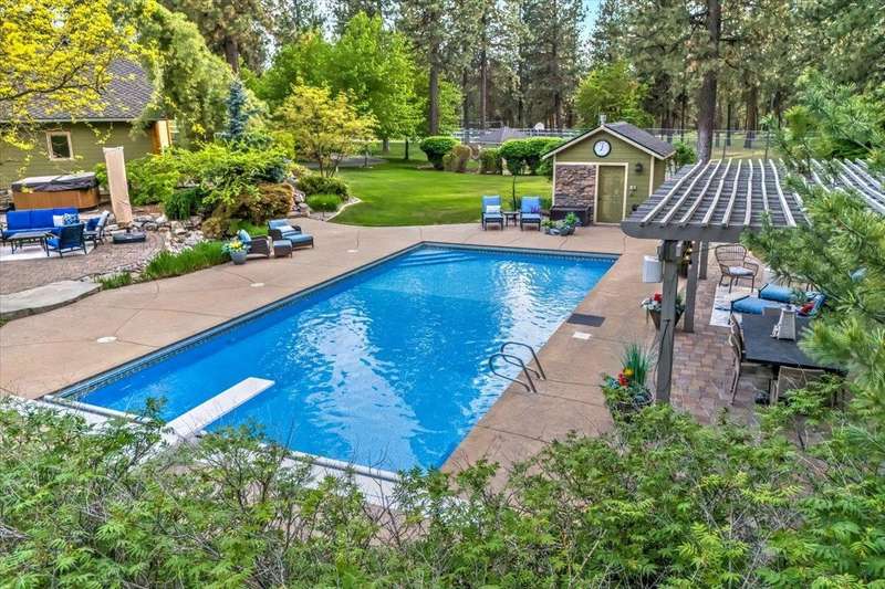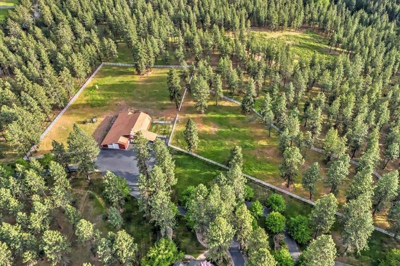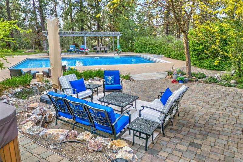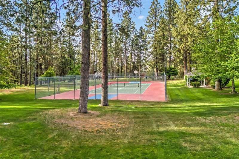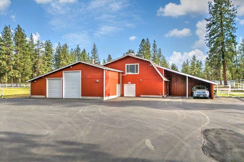 LUXURIOUS PNW ESTATE! Experience one of Spokane‘s Premier Properties nestled in the trees on 11.3 acres! This meticulous & serene home is an entertainer’s dream featuring privacy, sweeping views, gated entry, tree lined driveway, full size tennis court, incredible 20x40 saltwater pool, paver patio, tranquil water feature, pond & cozy fire pit. Equestrian lovers will enjoy the lavish 12-stall Barn/versatile 5222 sf shop complete w/ 2bed/1Bath 1400 sf guest quarters above. This Exquisite 7bed, 5bath Estate boasts 7,210 sf & has been thoughtfully designed w/attention to detail & quality throughout. Incredible gourmet kitchen boasts a built-in stainless fridge, custom cabinetry, 6-burner gas range, wet bar w/wine fridge, formal & informal dining spaces. Extensive use of beam & log throughout & breathtaking sunroom you must see to believe w/ walls of windows & skylights. The primary suite is a haven of luxury with attached office w/ fireplace, sitting area, soaring ceilings, large tiled shower & 2 walk in closets.